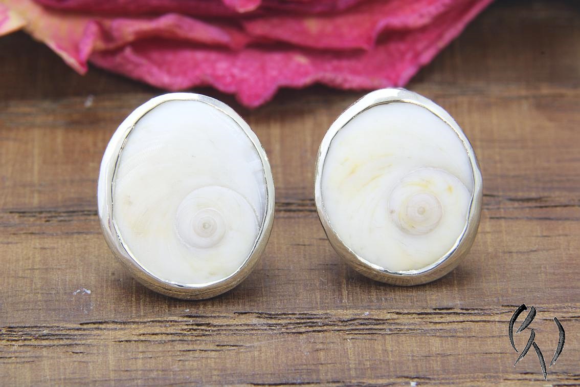 Die Ohrstecker unterscheiden sich leicht in der Größe, da jede Muschel ein EInzelstück ist. Sie sind 12,8 x 11 und 12,3 x 10,5 mm groß.