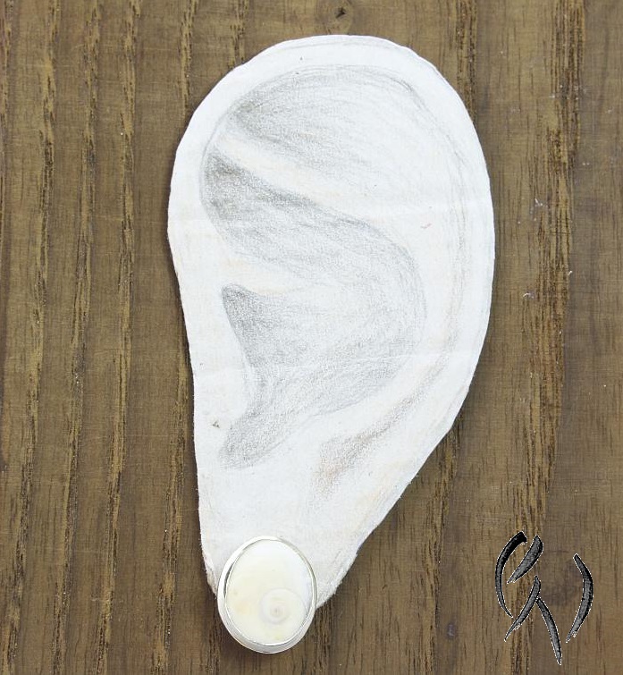 Auf der silbernen Fassung zeichnet sich die Rückseite der Schnecke ab und zeigt deren Form.