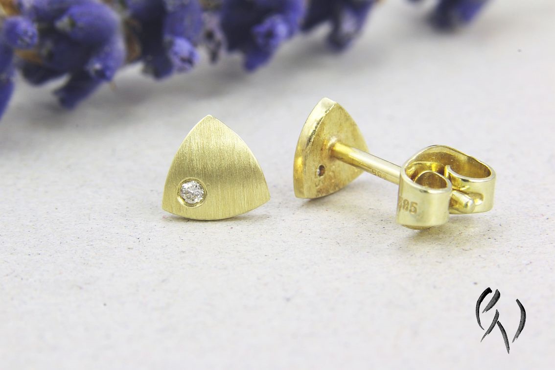 Diese kleine Dreieckohrstecker sind wunderschöne Begleiter für jeden Tag. Mit ihrer matten Oberfläche haben sie eine tolle Wirkung am Ohr.