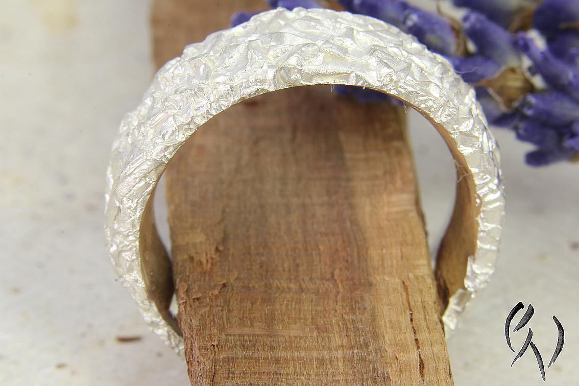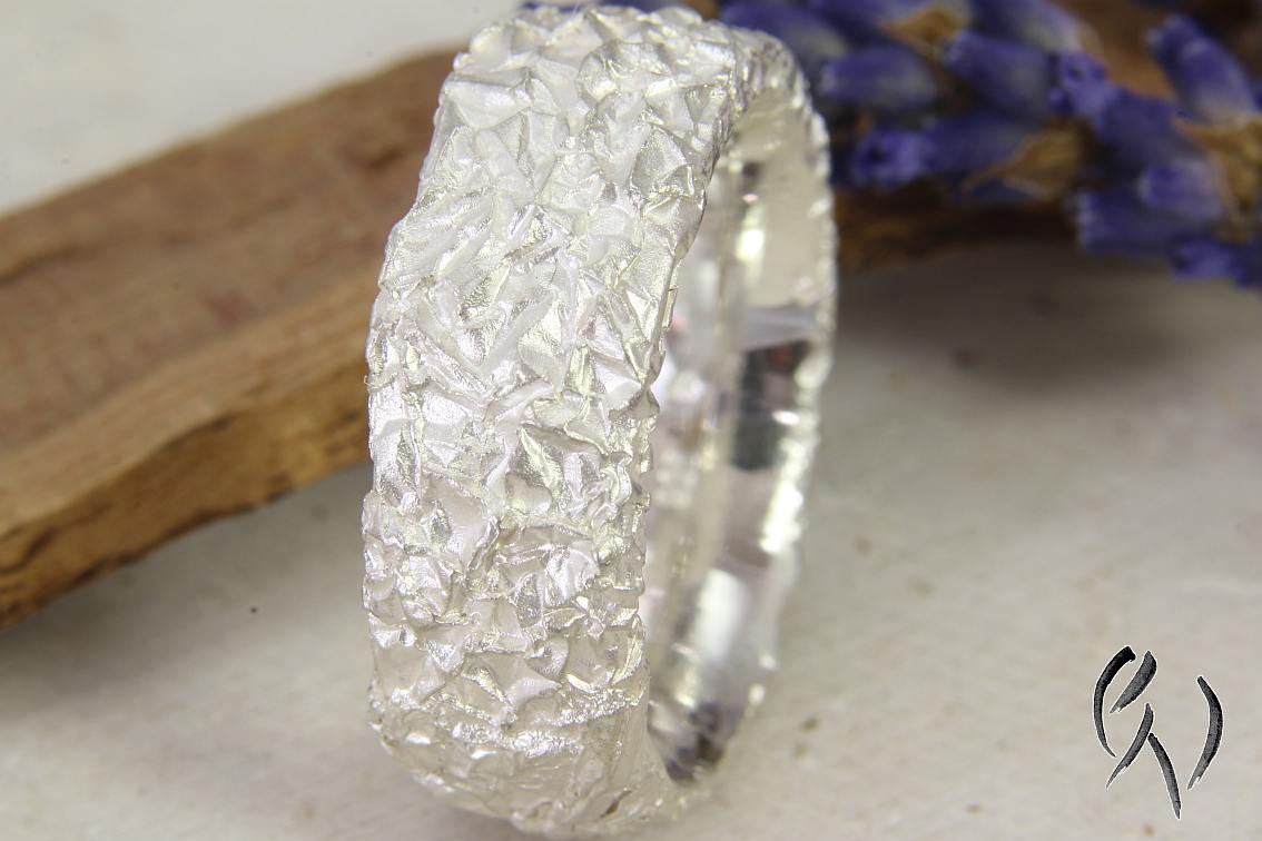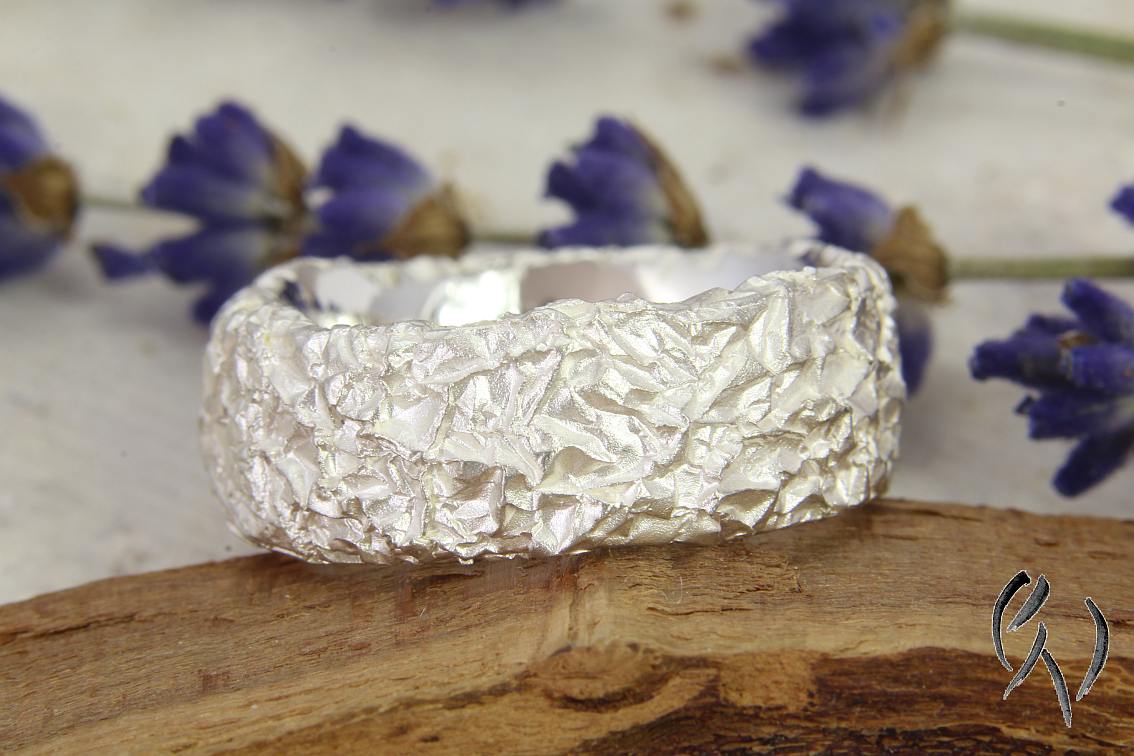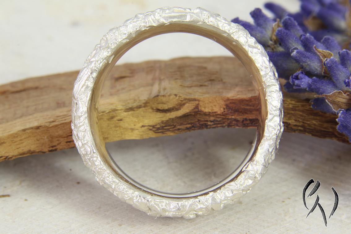 Innen ist der Ring weich abgerundet, dadurch ist er trotz der Knitterstruktur gut zu tragen.