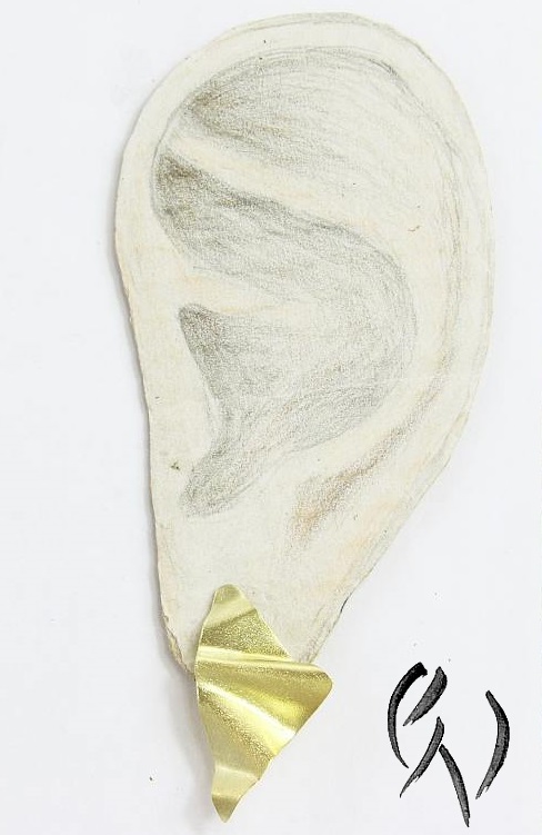 Auffällige, goldene Ohrstecker aus eigener Anfertigung.