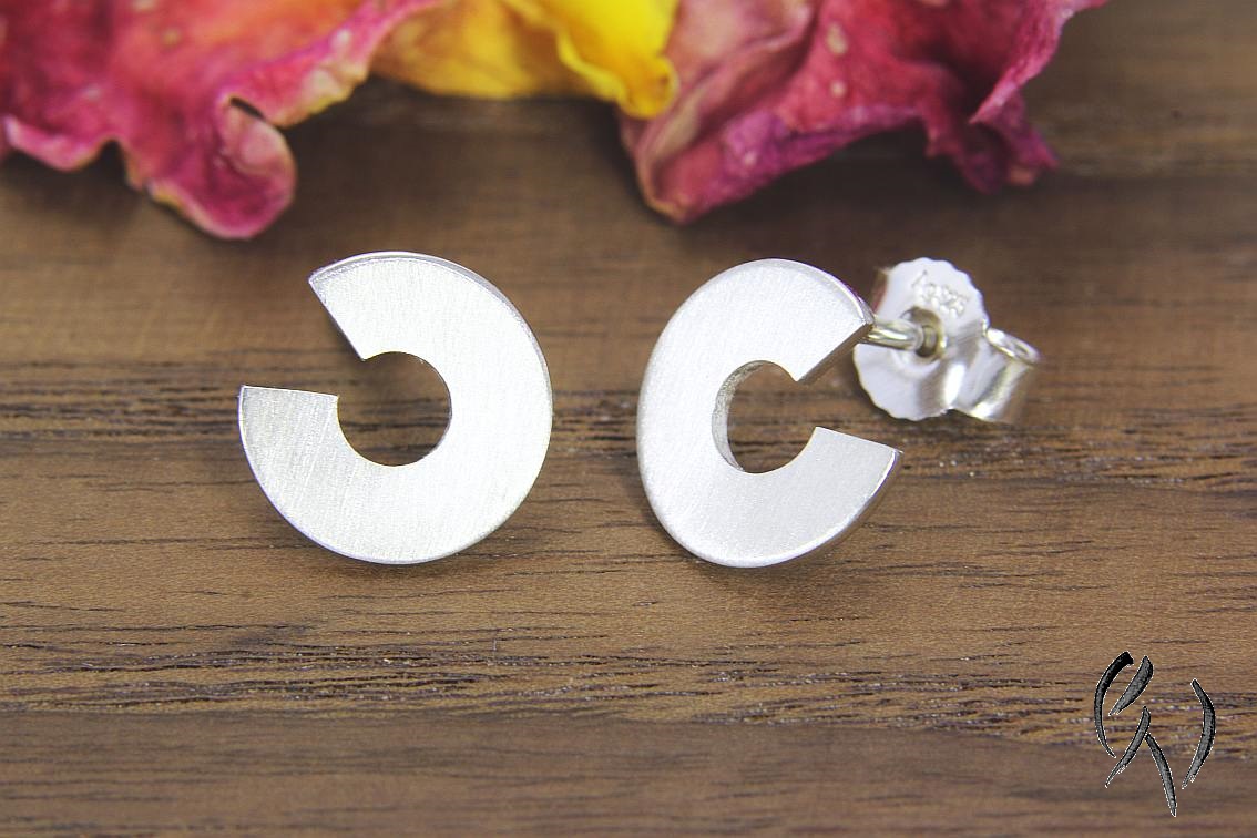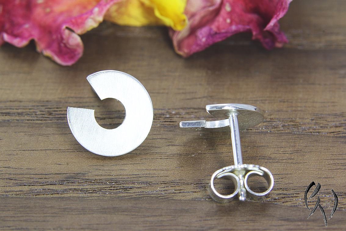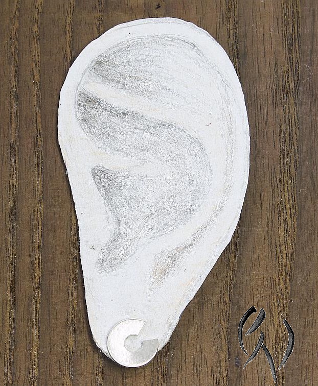 Die kleinen Kreise sind nicht vollständig, sondern öffnen sich seitlich ein wenig. Verstärkt wird dieser Effekt noch dadurch, dass ich die Scheiben ein kleines bisschen aufgebogen habe, sie liegen nicht ganz flach am Ohr.