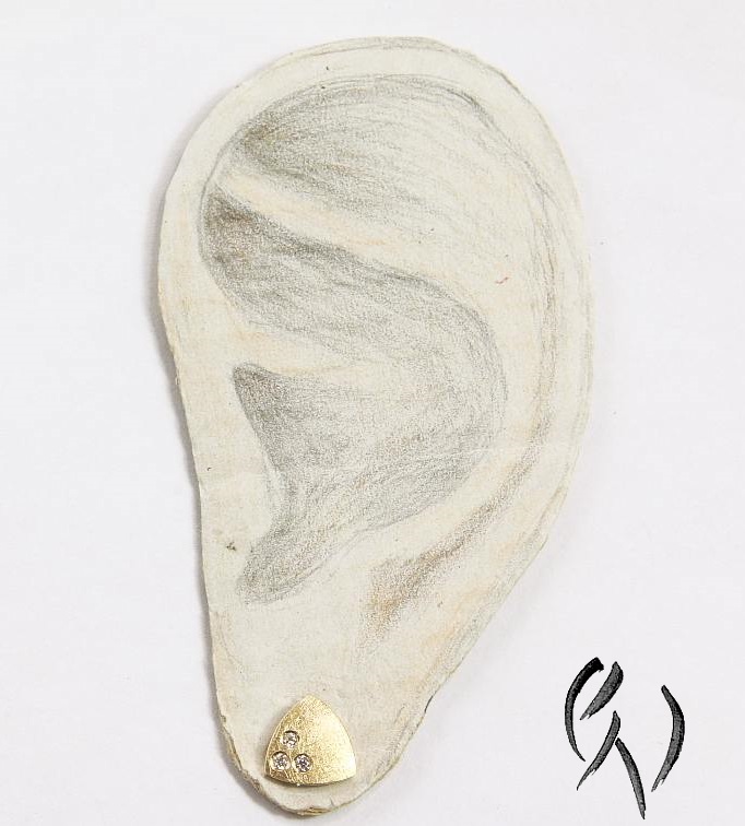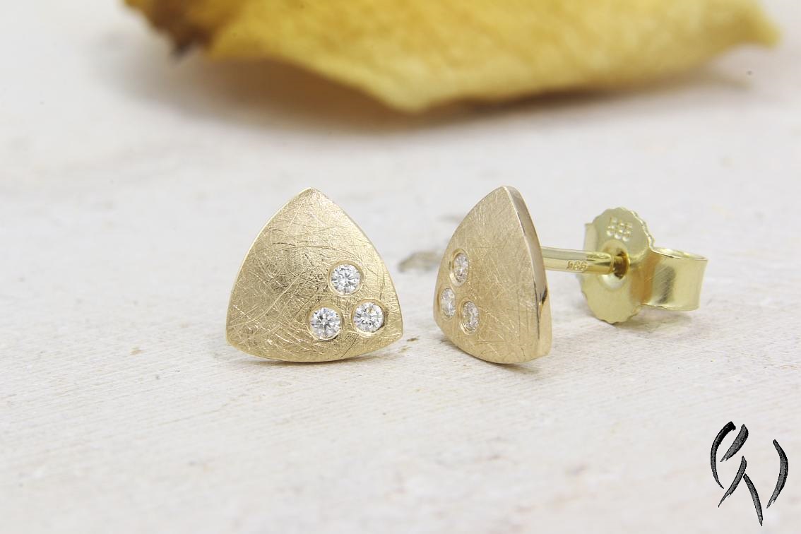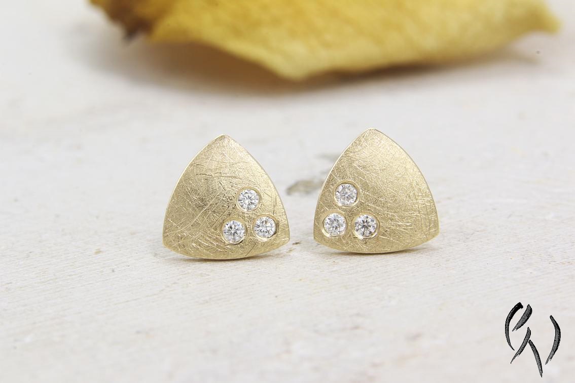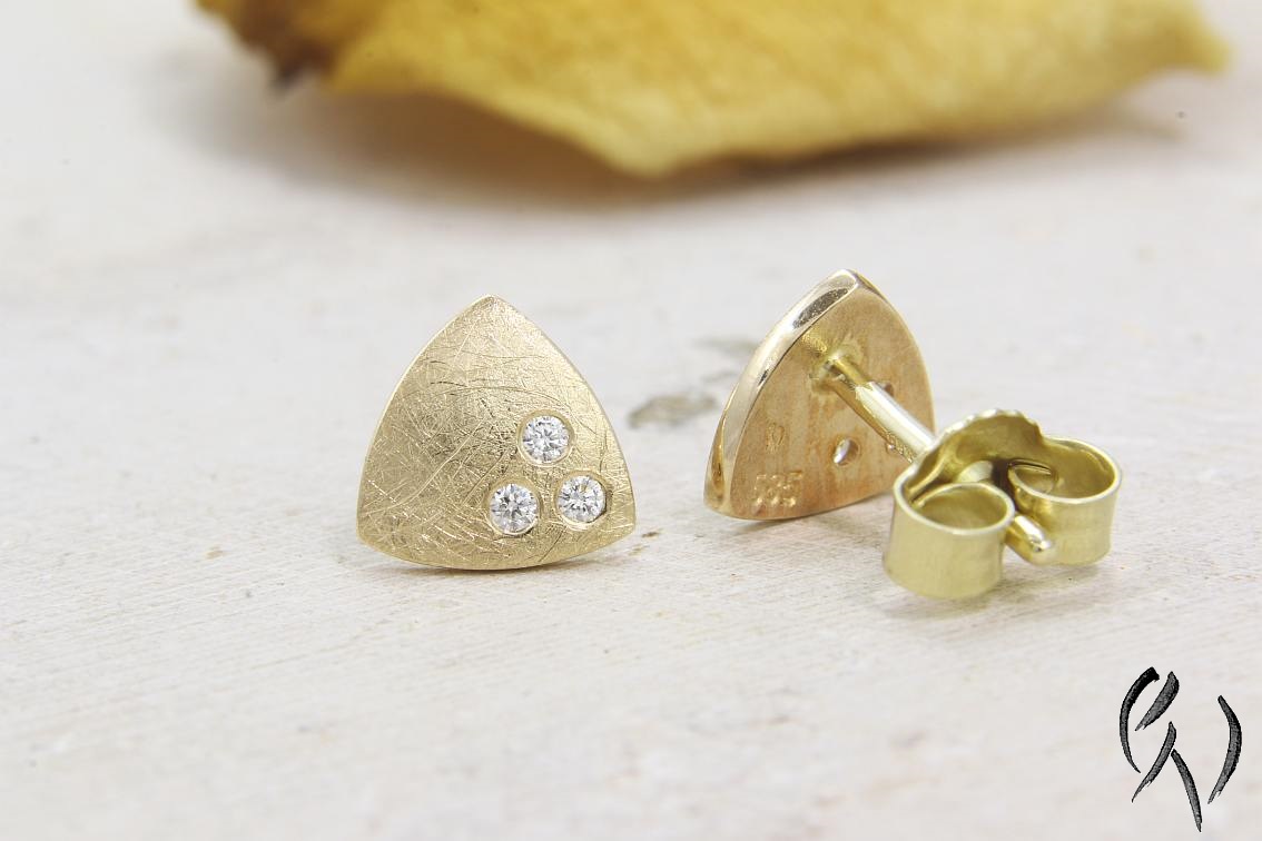 Sie sind wunderschöne Begleiter für jeden Tag. Mit ihrer leicht gewölbten, matten Oberfläche haben sie eine tolle Wirkung am Ohr. Als kleinen Blickfang habe ich in einer Ecke drei kleine Brillanten eingefasst.