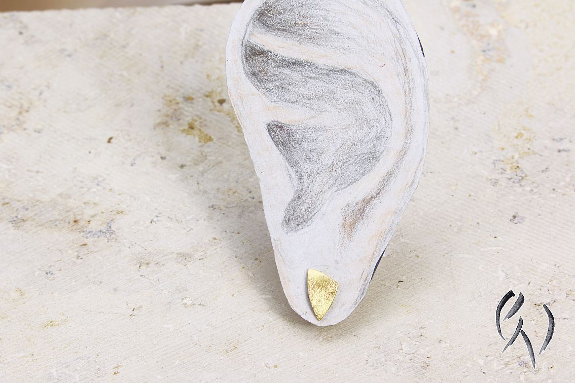 Die Oberflächenstruktur des Steckers am "Ohr" entspricht nicht der hier angebotenen Oberfläche, Dieser Ohrring dient nur der Veranschaulichung der Größe.