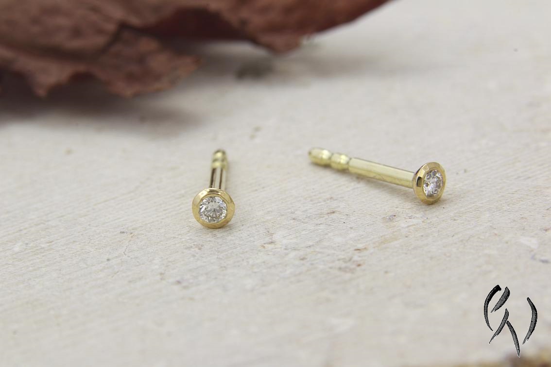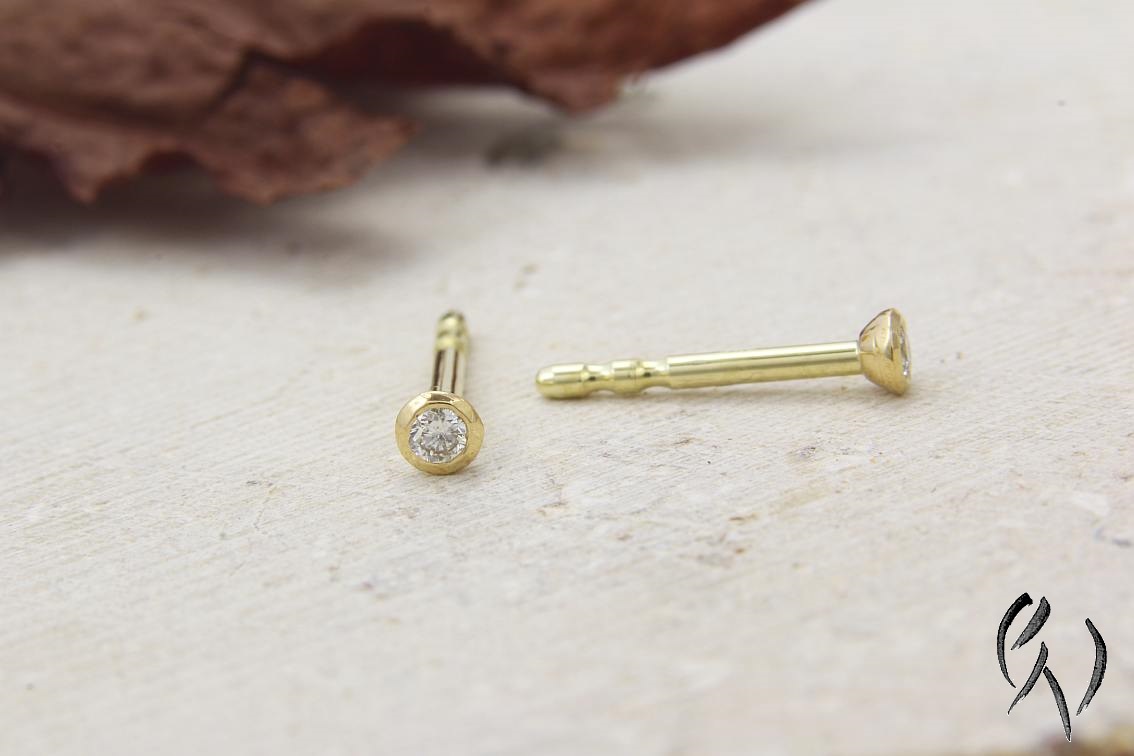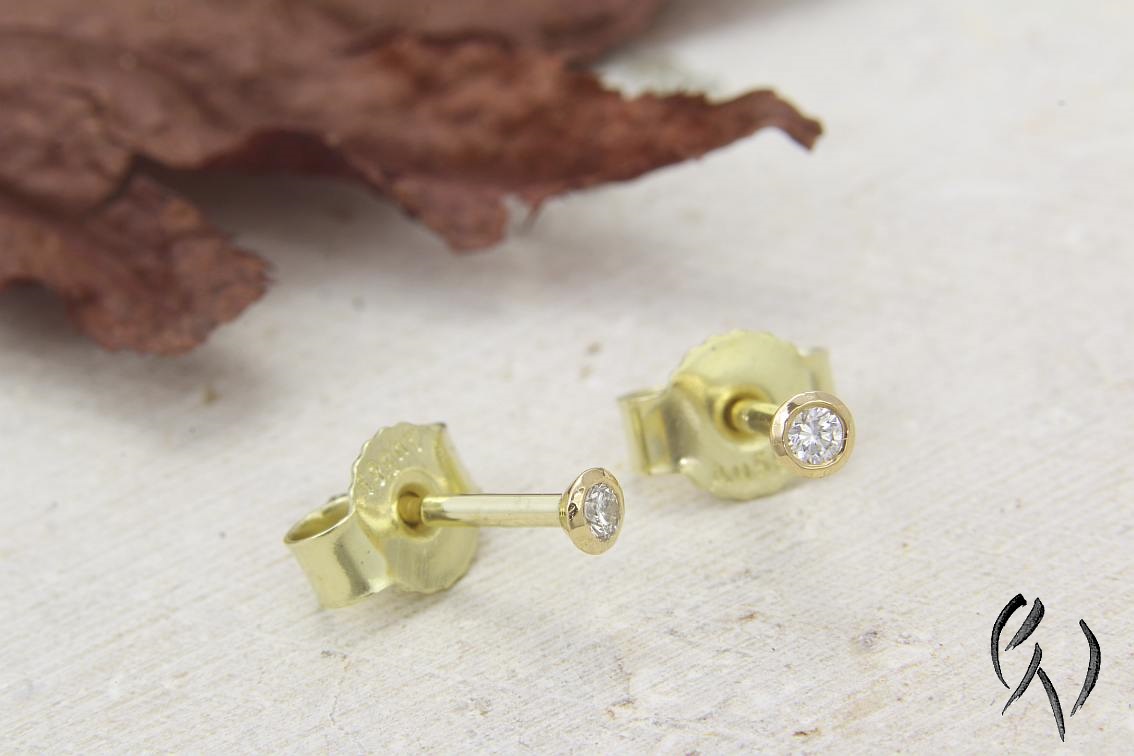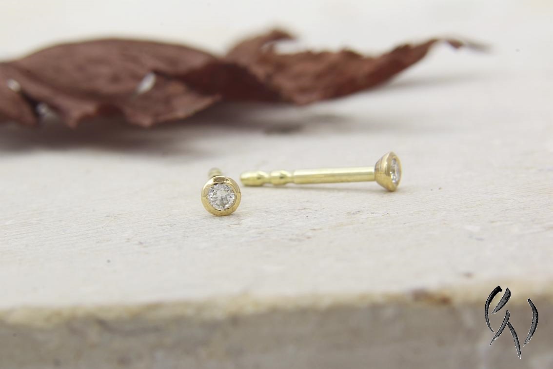 In einer kleinen Fassung aus Gelbgold ist ein kleiner Brillant von 0,02 ct eingefasst.