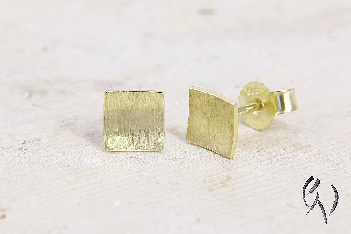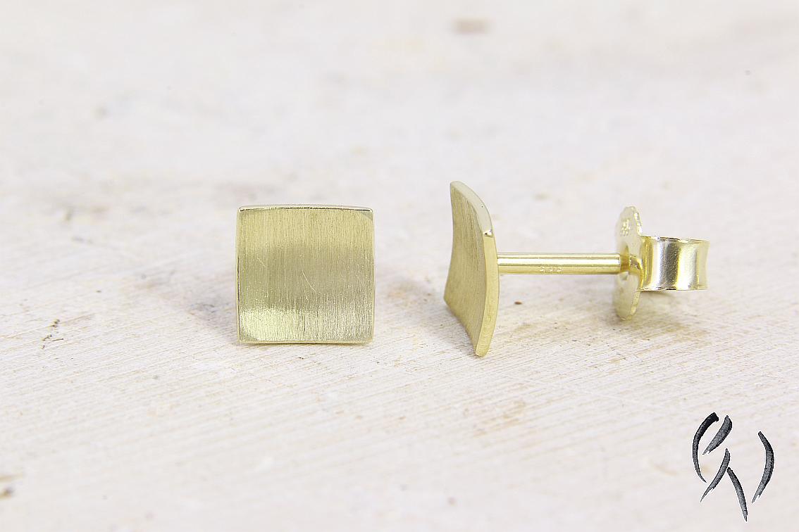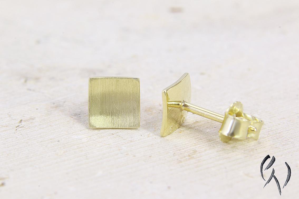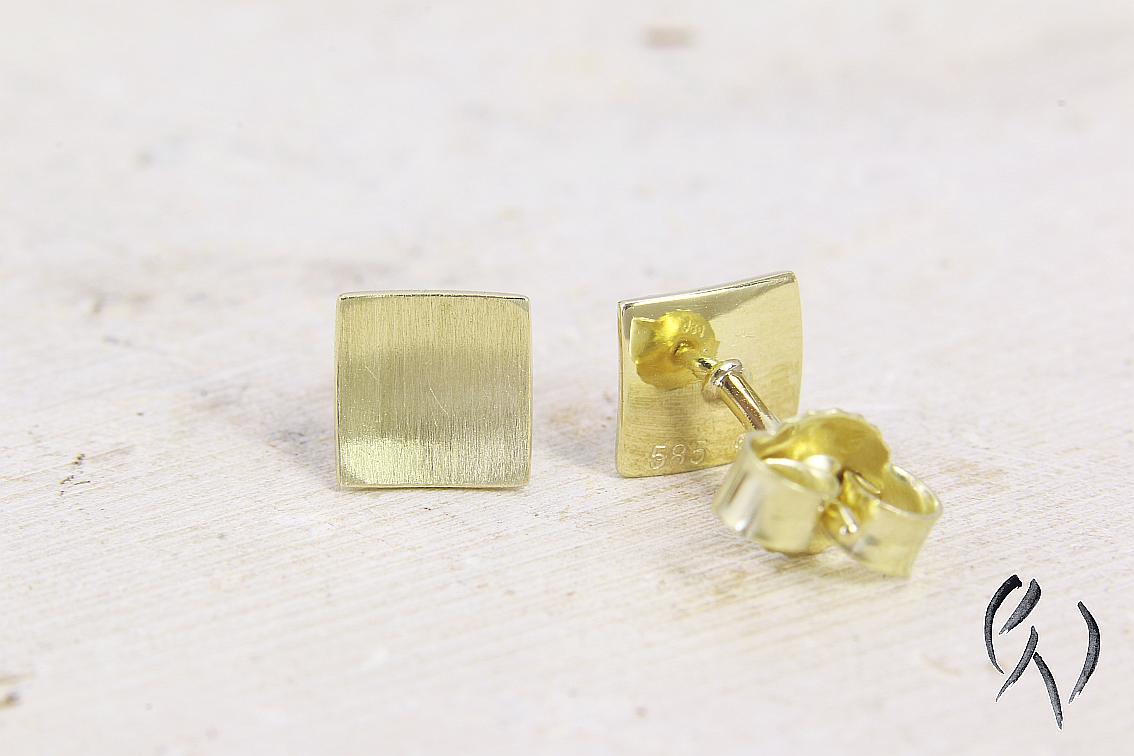 Bei diesen Ohrsteckern aus Gold 585/- ist die Fläche leicht nach innen gewölbt. Zusammen mit den polierten Kanten bildet die strichmatte Oberfläche einen schönen Kontrast und gibt diesen Ohrsteckern ein sehr edles Aussehen.