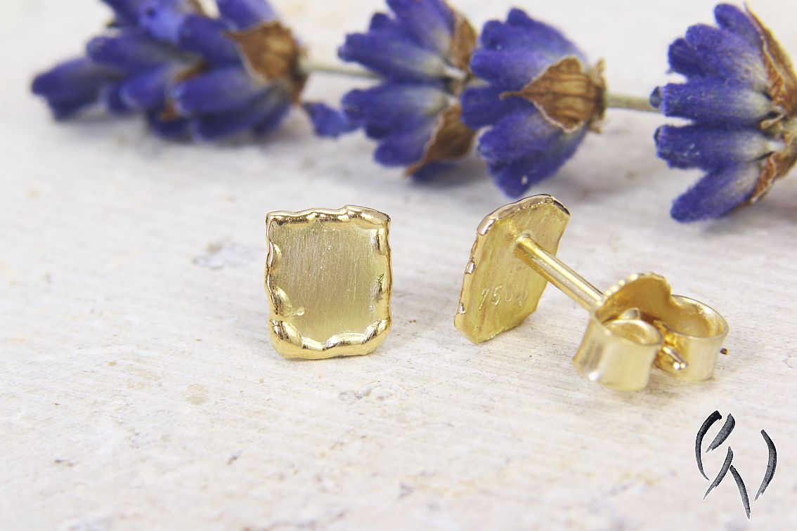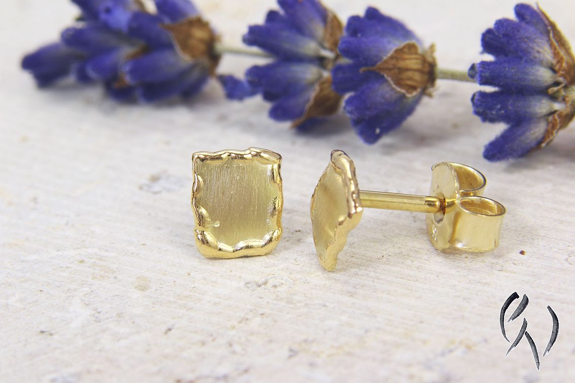 Hier habe ich hübsche, kleine Ohrstecker, deren strenge Form durch den besonderen Rand aufgelockert wird: