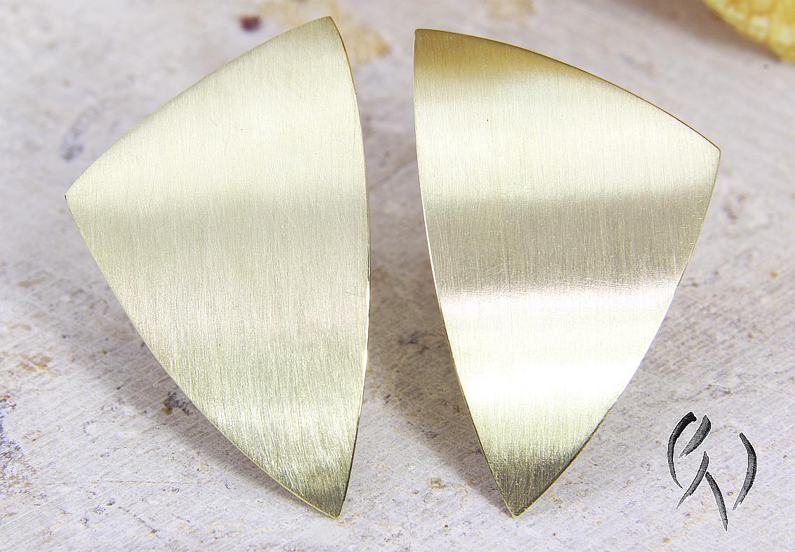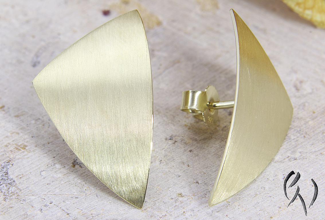 Die Ohrstecker sind leicht gebogen und haben eine seidenmatte Oberfläche. Die Außenkanten sind poliert.