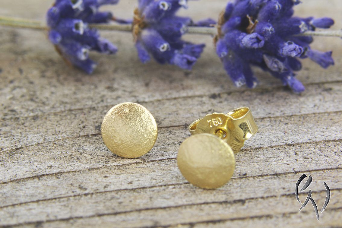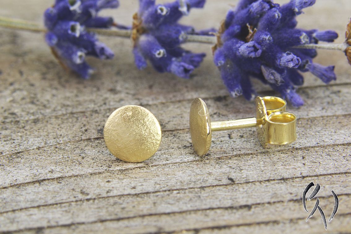 Die kleinen Scheiben erinnern mich an dier Sonne kurz bevor sie untergeht. Das blendende Licht ist einem warmen Schein gewichen und die Sonne hängt groß und rund über dem Horizont. Diesen Schimmer habe ich mit diesen Ohrsteckern eingefangen.