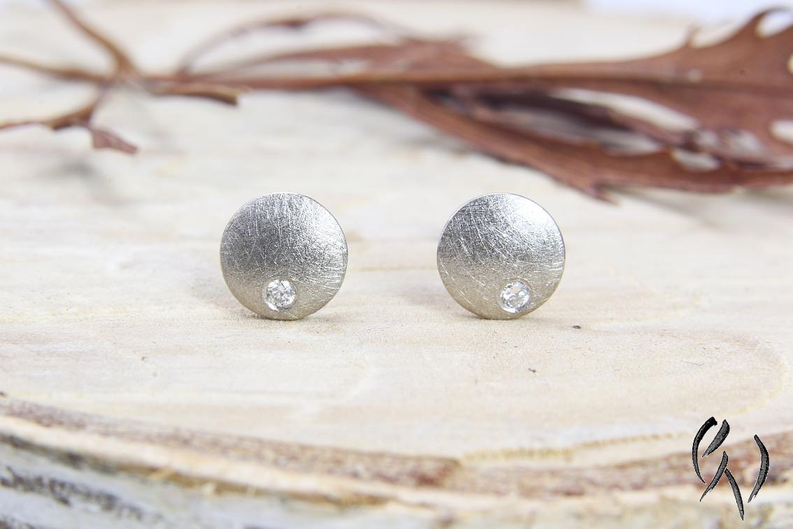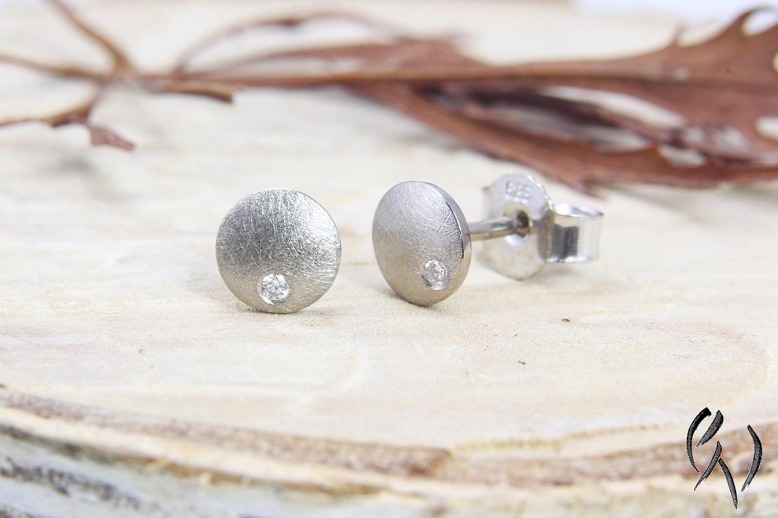 Kleine, handgefertigte Ohrstecker aus Weißgold 585/-