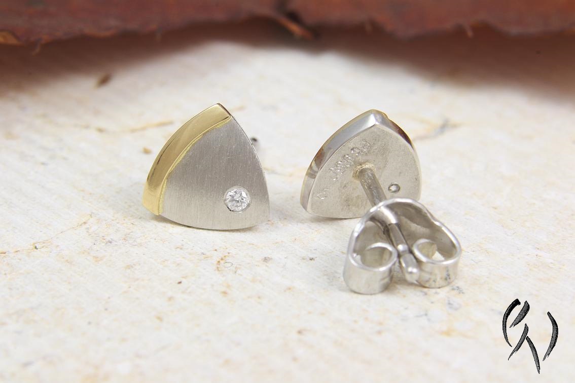 Handgemachte Ohrstecker aus Platin 950/- und Gold 750/-.