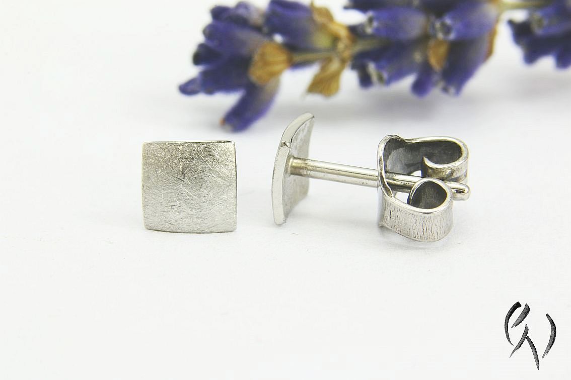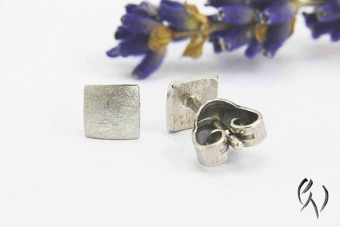 Diese kleine quadratische Ohrstecker sind wunderschöne Begleiter für jeden Tag. Mit ihrer mattgekratzten Oberfläche haben sie eine tolle Wirkung am Ohr.