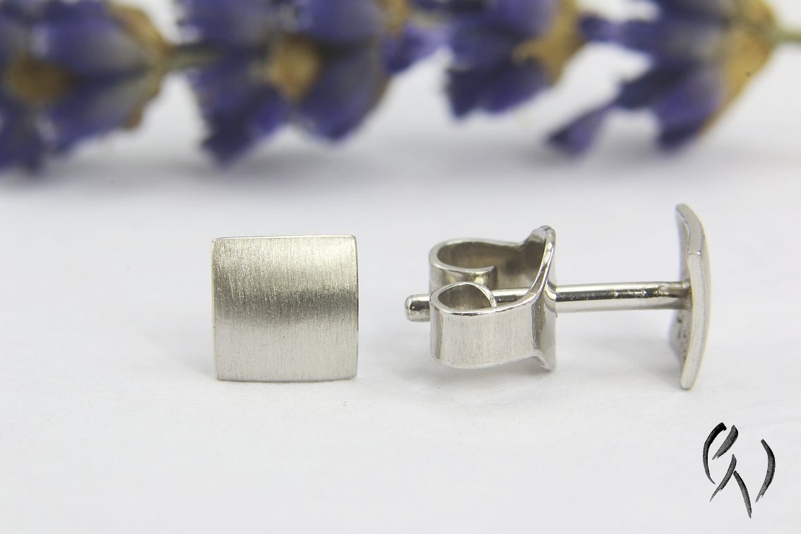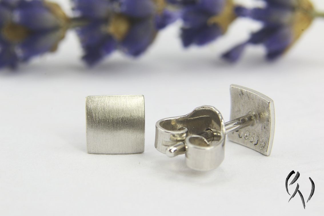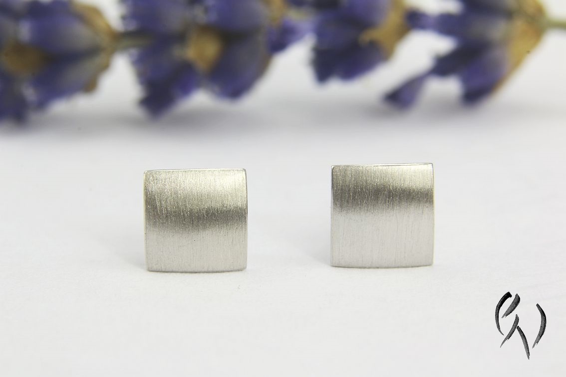 Diese kleine quadratische Ohrstecker sind wunderschöne Begleiter für jeden Tag. Mit ihrer strichmatten Oberfläche haben sie eine tolle Wirkung am Ohr.