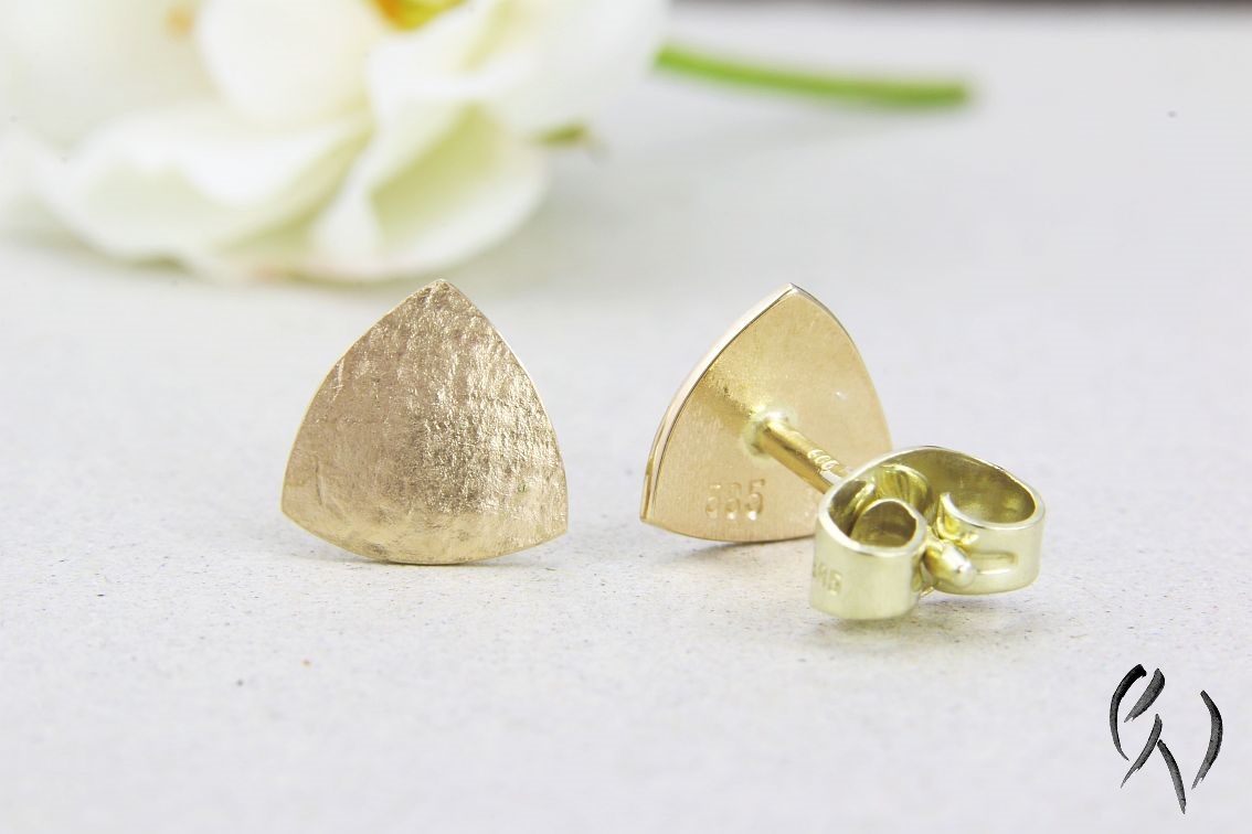 Diese roségoldene Ohrstecker sind die mittelgroße Ausführung meiner Dreiecke-Kollektion.