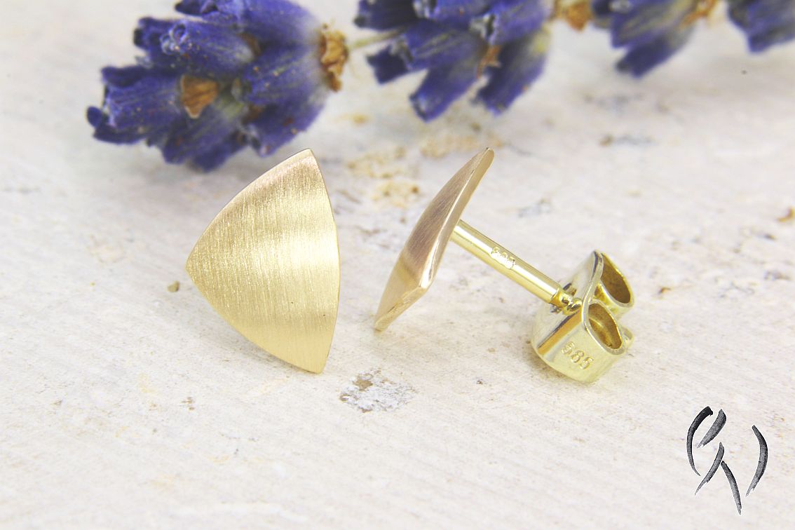 Kleine dreieckige Ohrstecker aus Roségold 585/-.