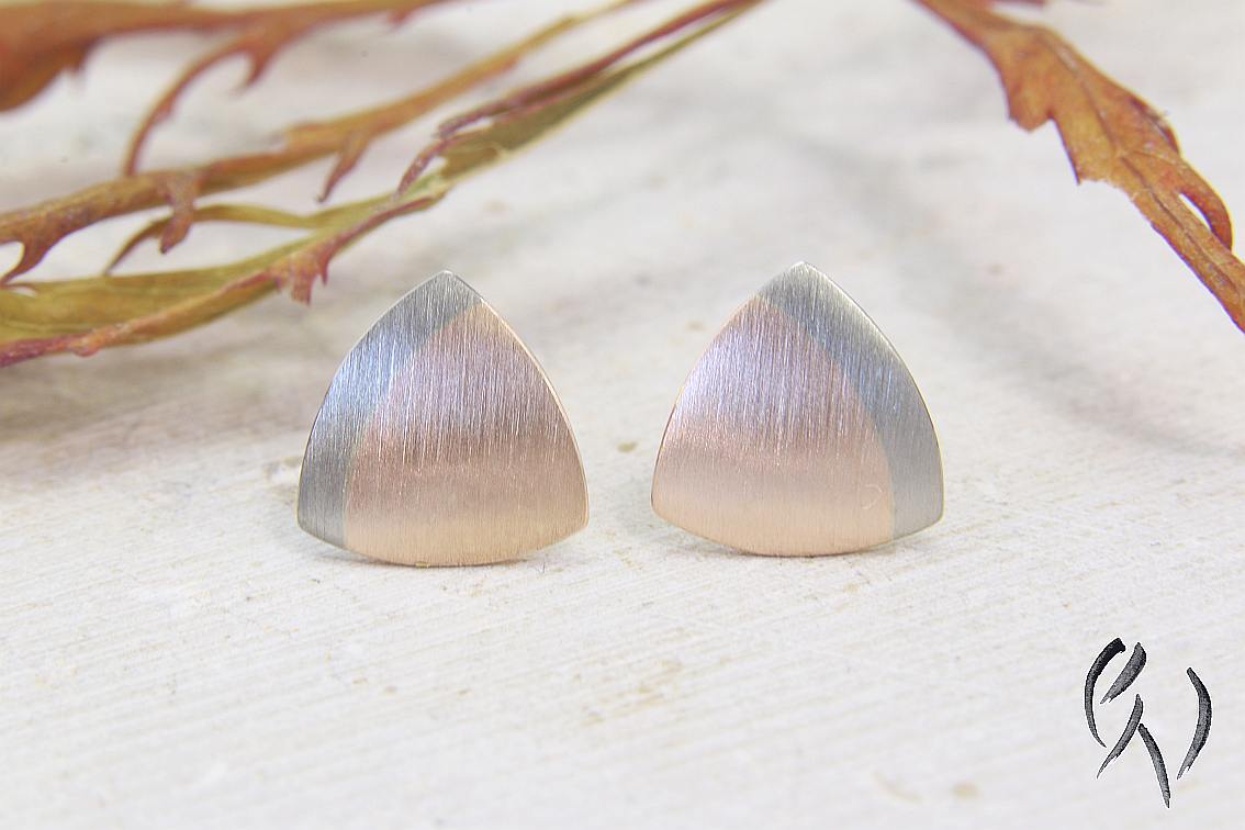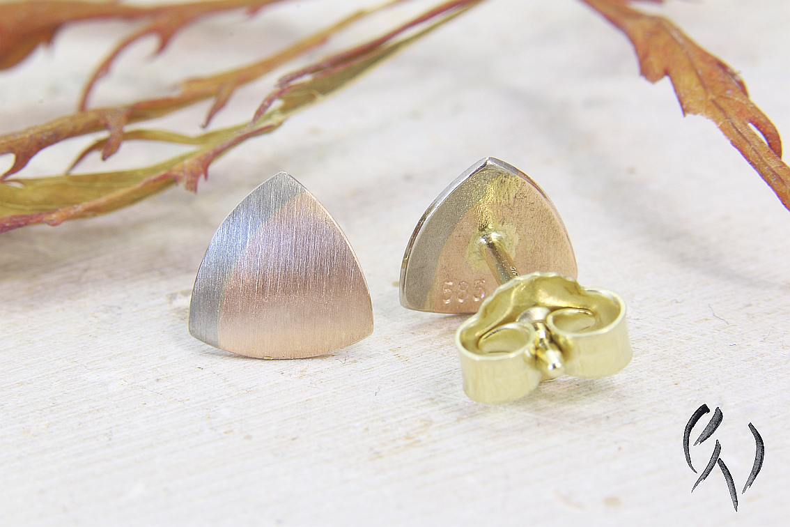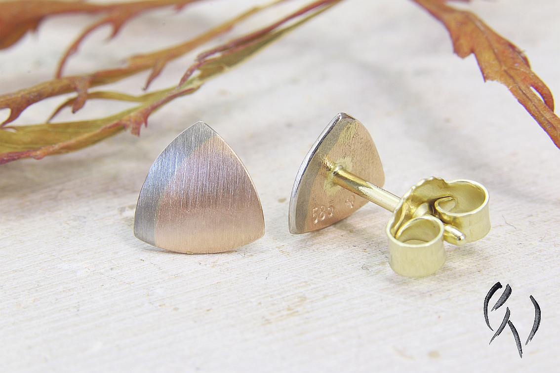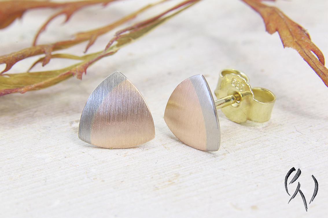 Diese rotgoldene Ohrstecker sind die mittelgroße Ausführung meiner Dreiecke-Kollektion.