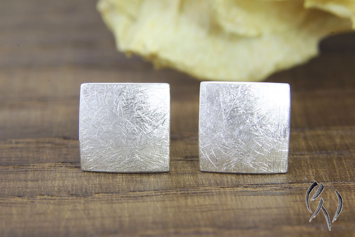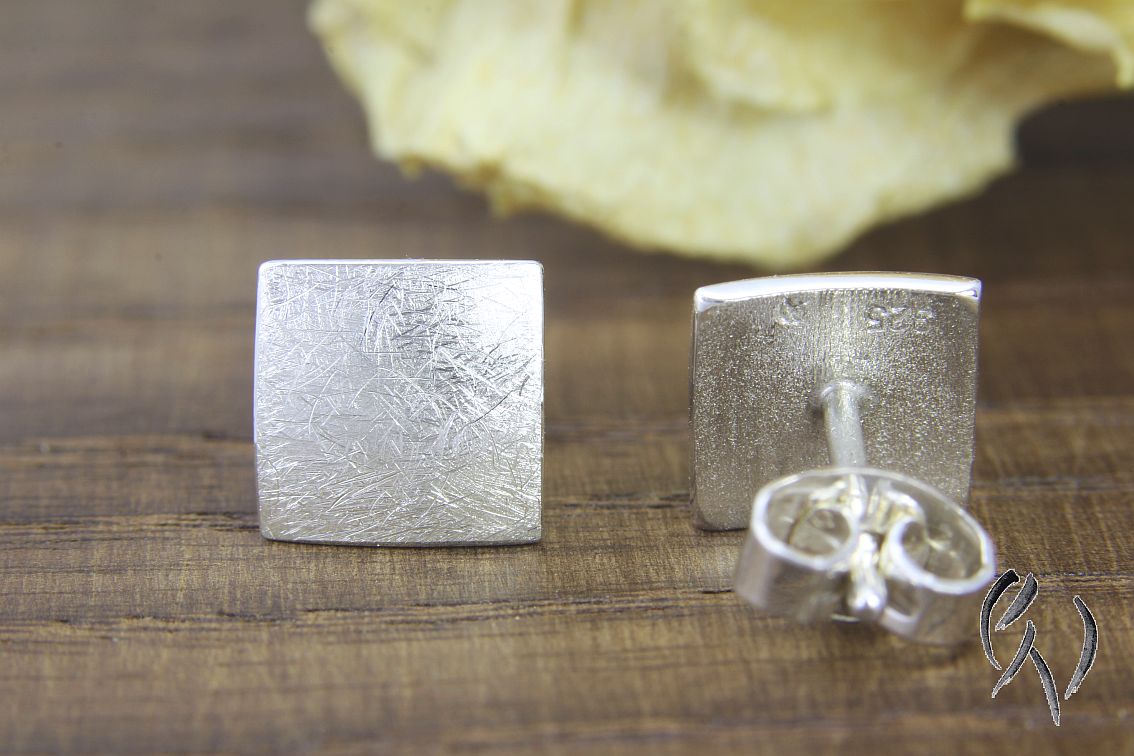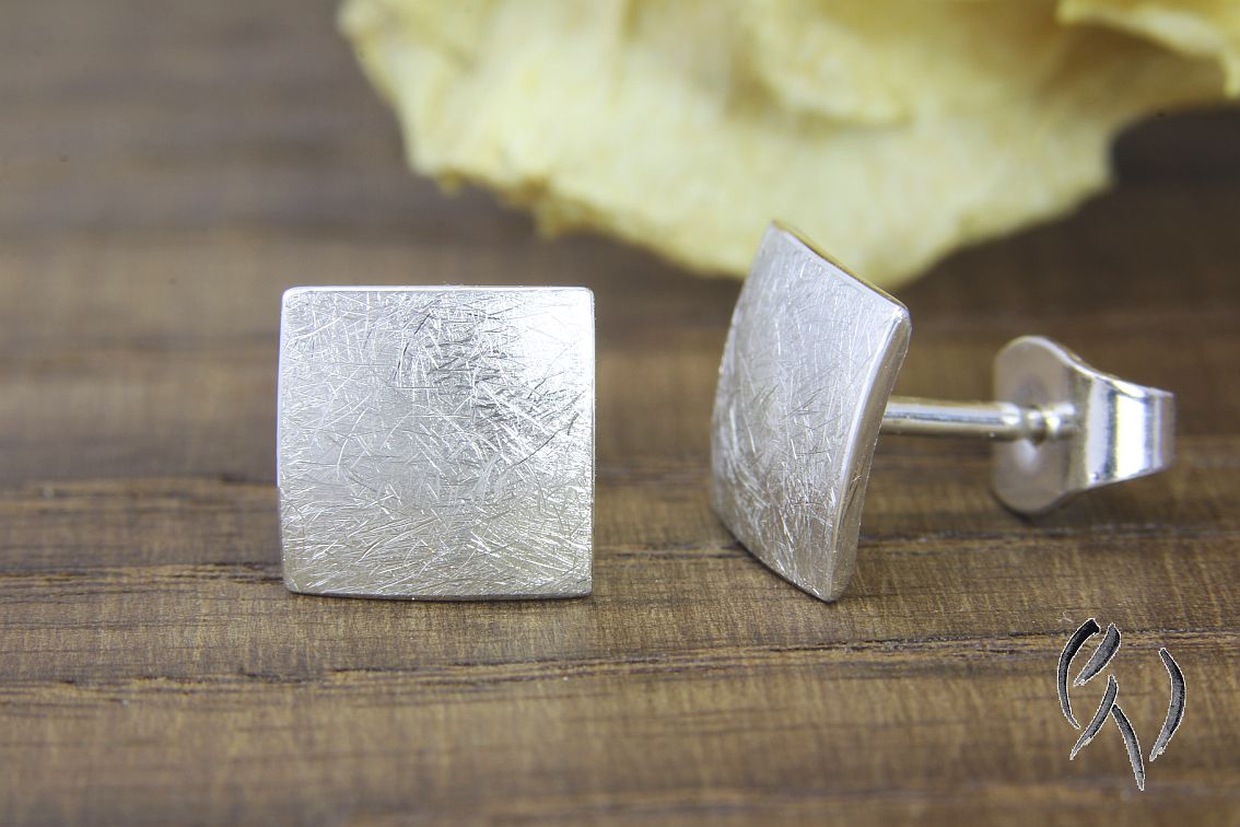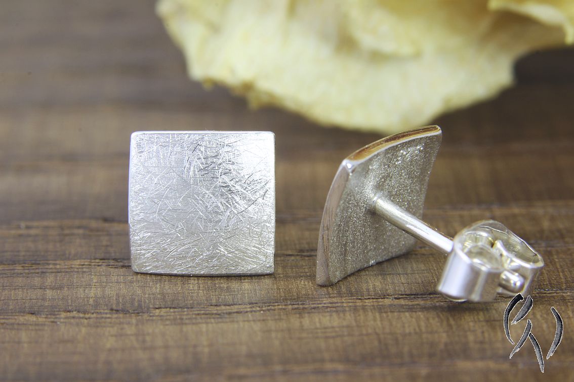 Diese Ohrstecker überzeugen durch das Zusammenspiel von Form und Struktur: Ein schlichtes Quadrat wurde hier kombiniert mit einer mattgekratzten Oberfläche. Das Ergebnis sind bezaubernde Ohrstecker für jede Gelegenheit.