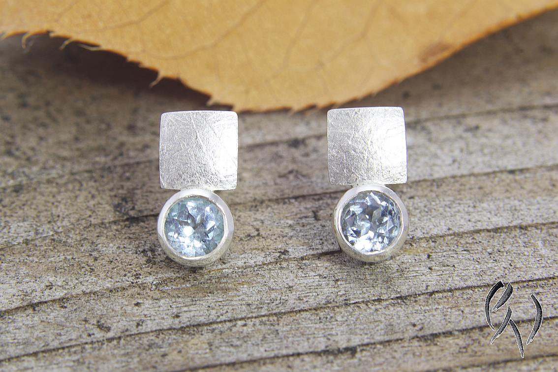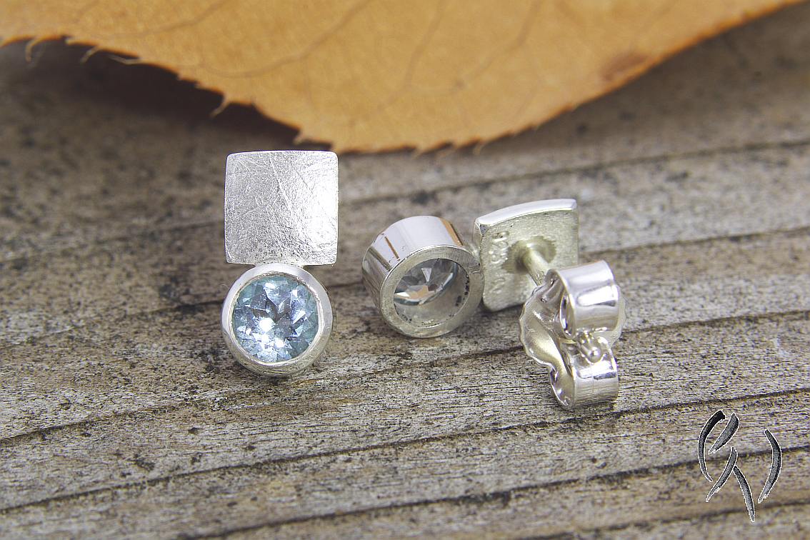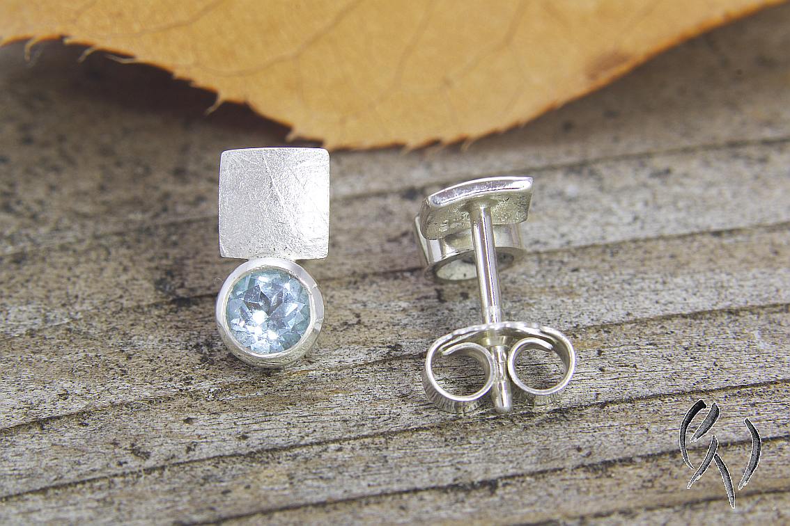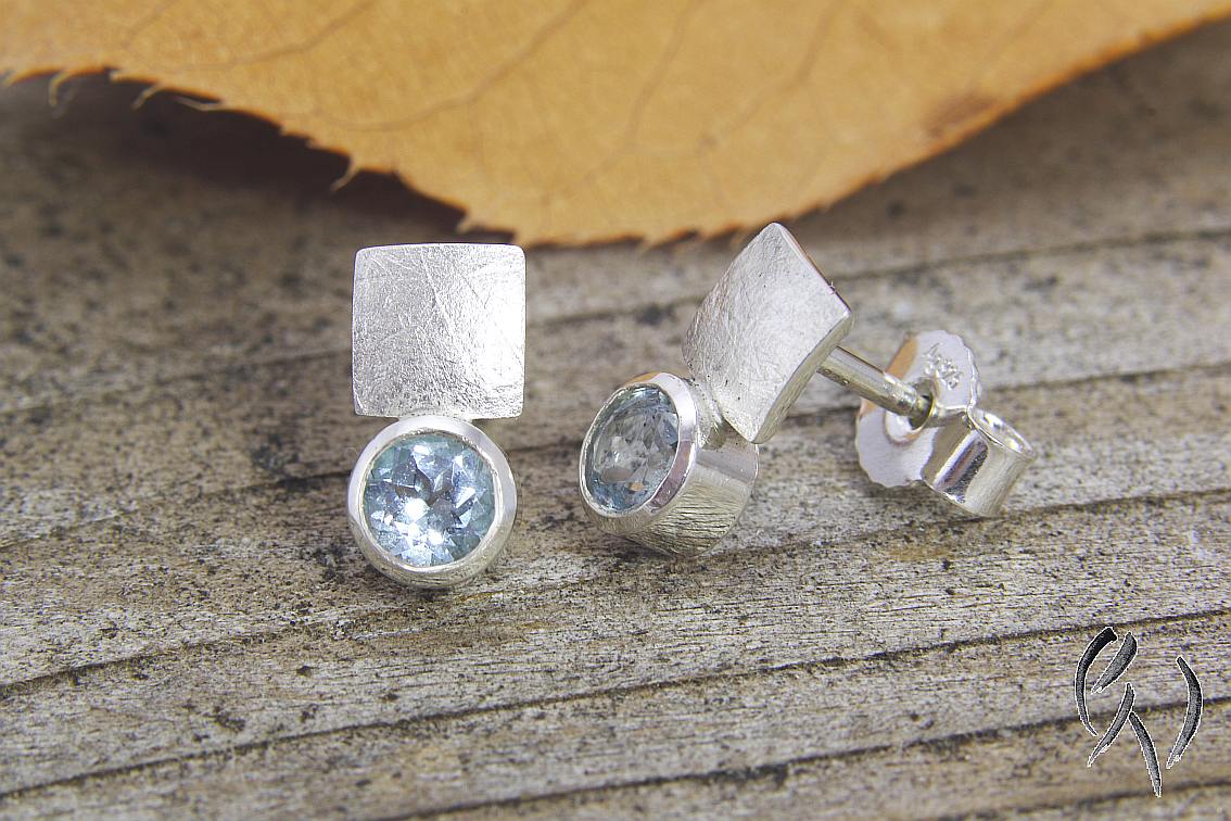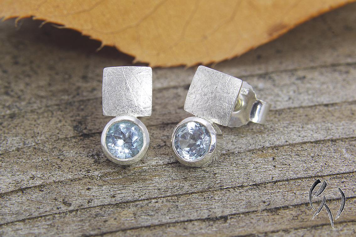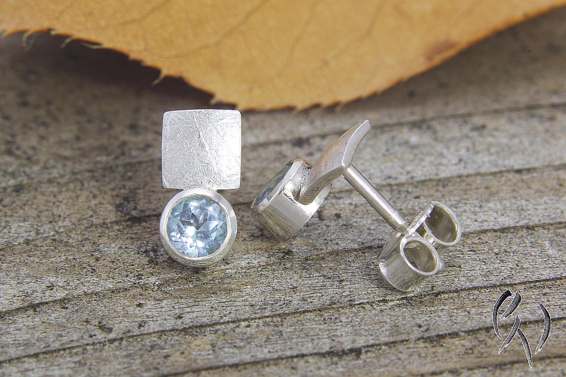Kleine Ohrstecker aus Silber mit Blautopas.