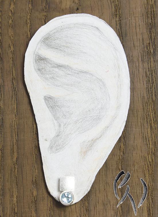 An ein papierstrukturiertes Quadrat habe ich unten eine Fassung für einen Blautopas angesetzt.