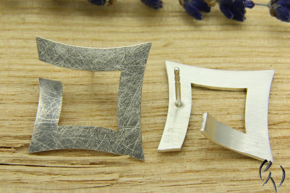 Ungewöhnliche Ohrstecker aus geschwärztem Silber: