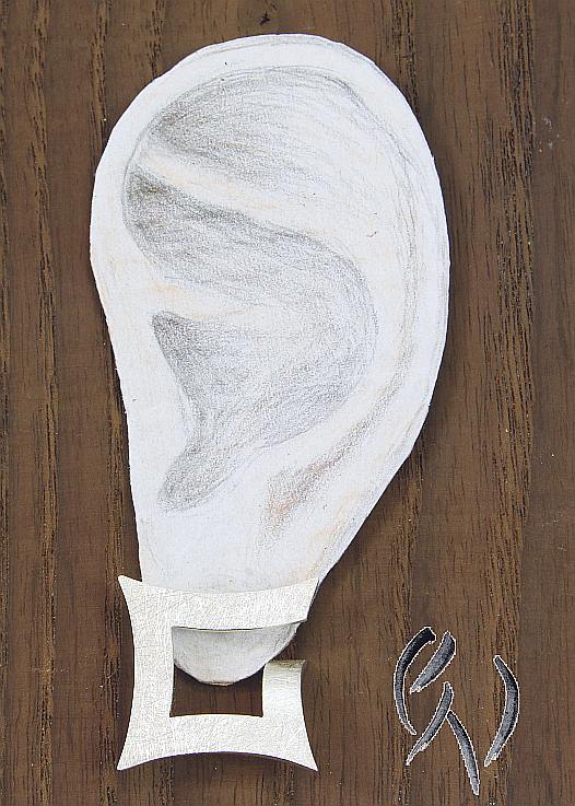Eine Seite des Rahmens ist geöffnet und schwingt sich hinter das Ohrläppchen.