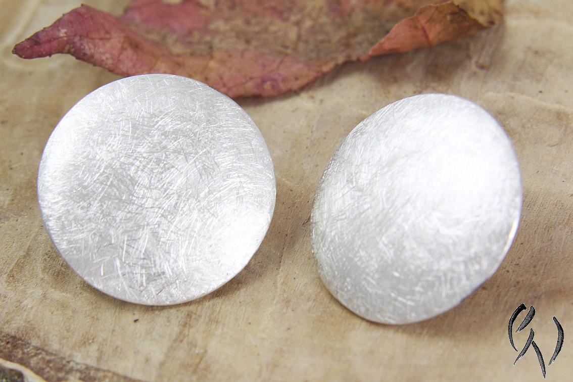 Diesen hellen Schein habe ich in diesen Ohrsteckern aus Silber 925/- eingefangen: Die leicht gewölbte, mattgekratzte Oberfläche glitzert sanft. Einen kleinen Glanz bringen die polierten Außenkanten um den Mond herum.