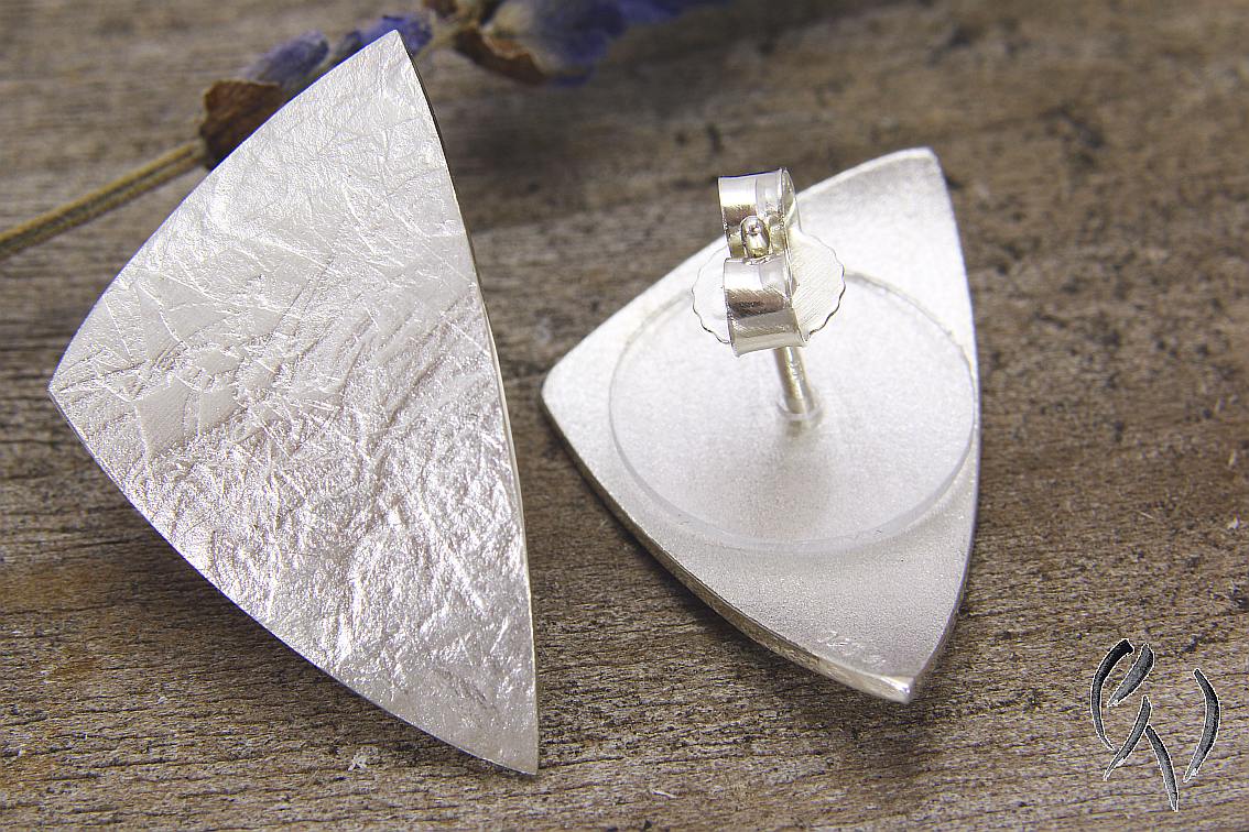Große silberne Ohrstecker aus eigener Anfertigung.