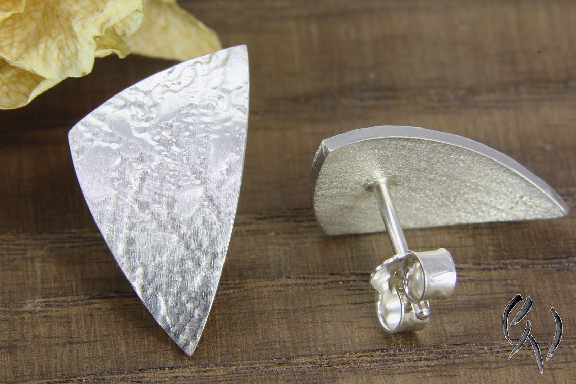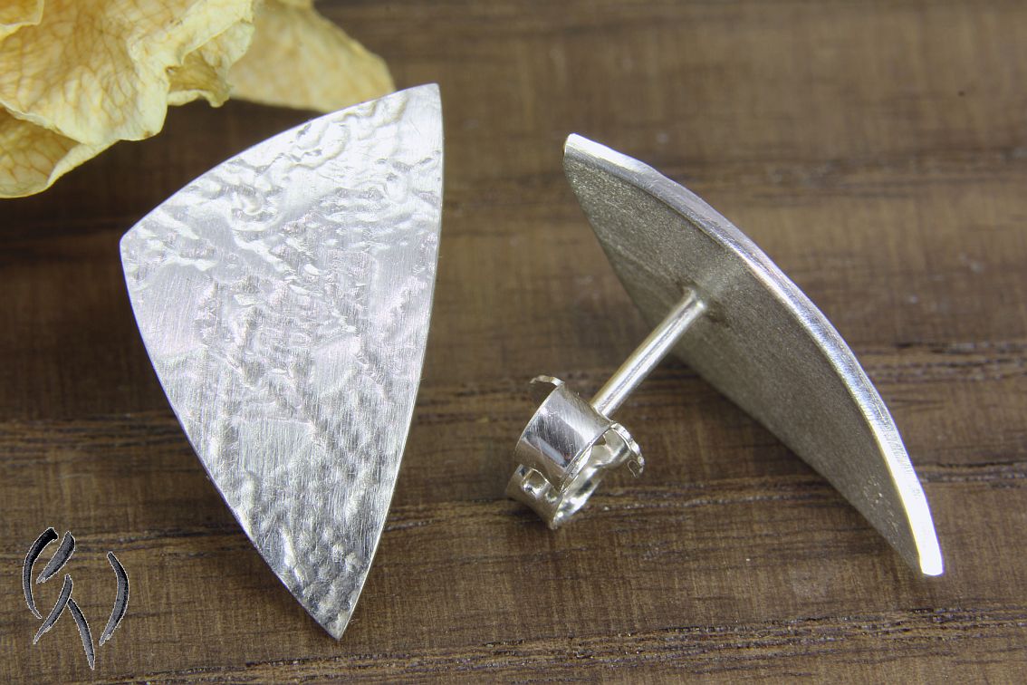 Große silberne Ohrstecker aus eigener Anfertigung.