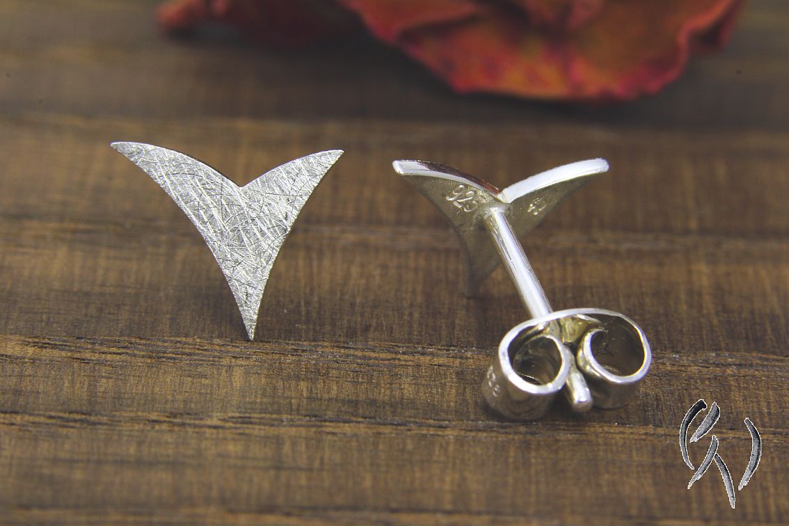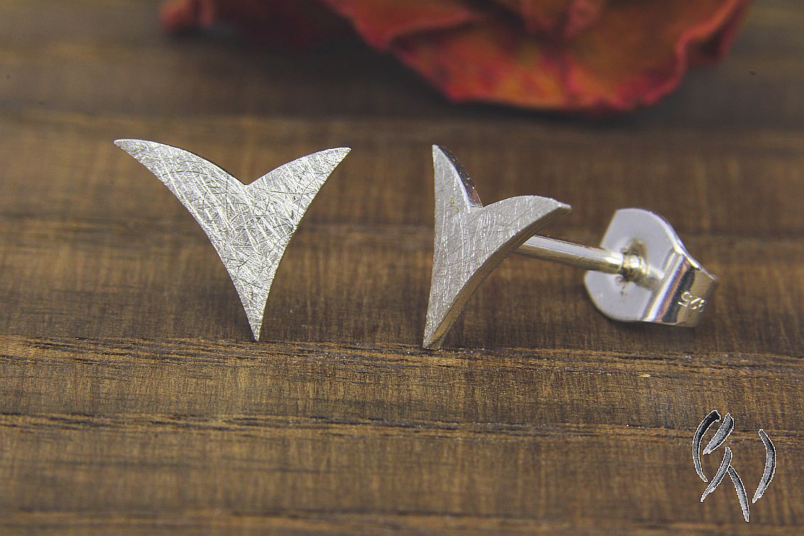 Kleine Ohrstecker aus Silber 925/- in Form eines Häckchens.