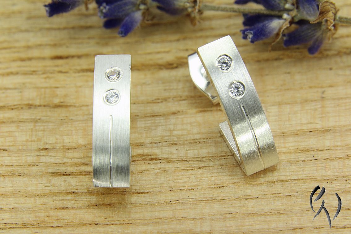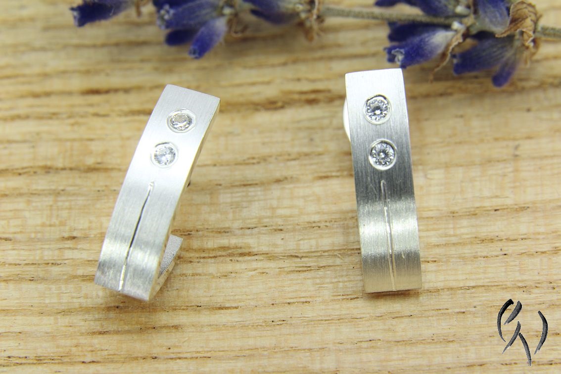 Die Oberfläche ist strichmatt und wird von einer Glanzlinie unterbrochen. Oberhalb der Linie habe ich zwei Zirkonia eingefasst.