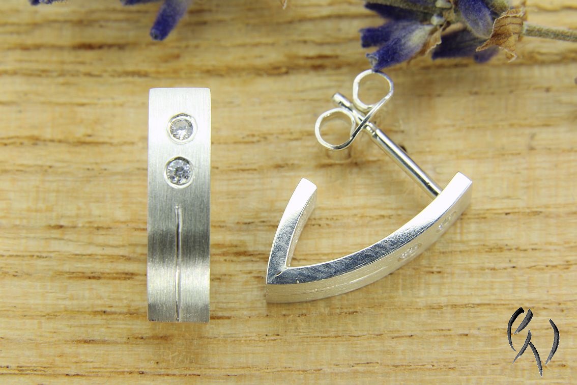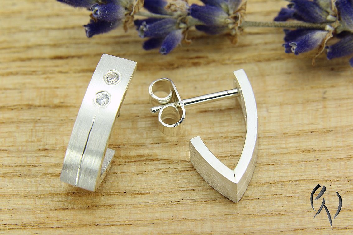Diese hübschen Ohrstecker aus Silber 925/- legen sich mit einem Knick sanft um das Ohrläppchen.