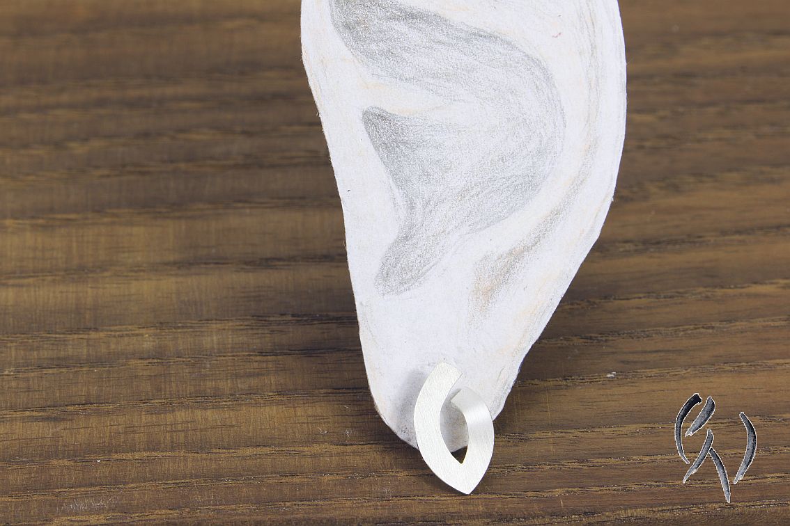 Die offene Seite biege ich ein wenig auf, man kann diesen Streifen auf Wunsch vor oder auch hinter das Ohrläppchen laufen lassen.