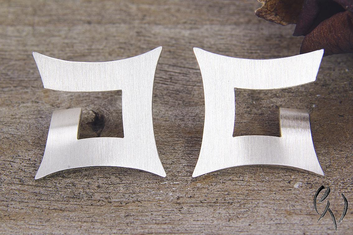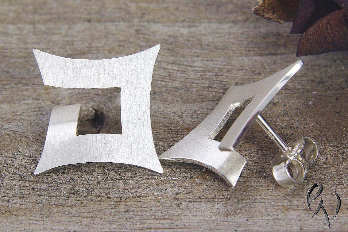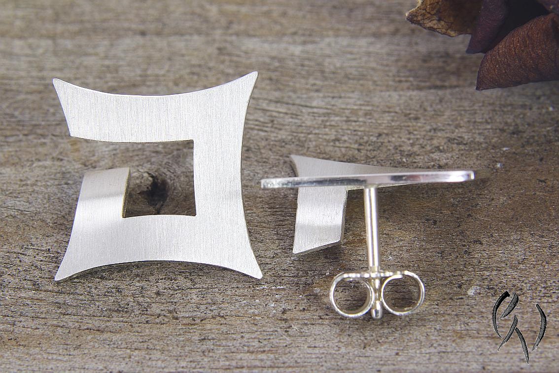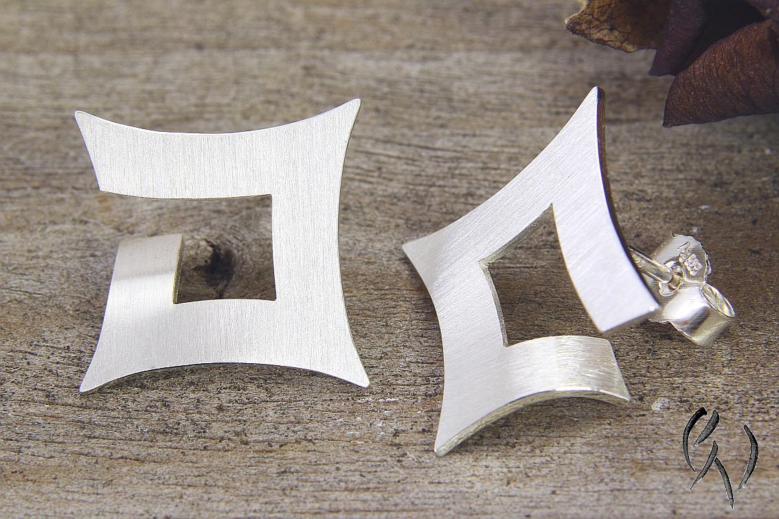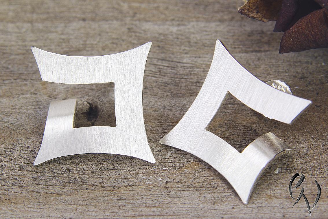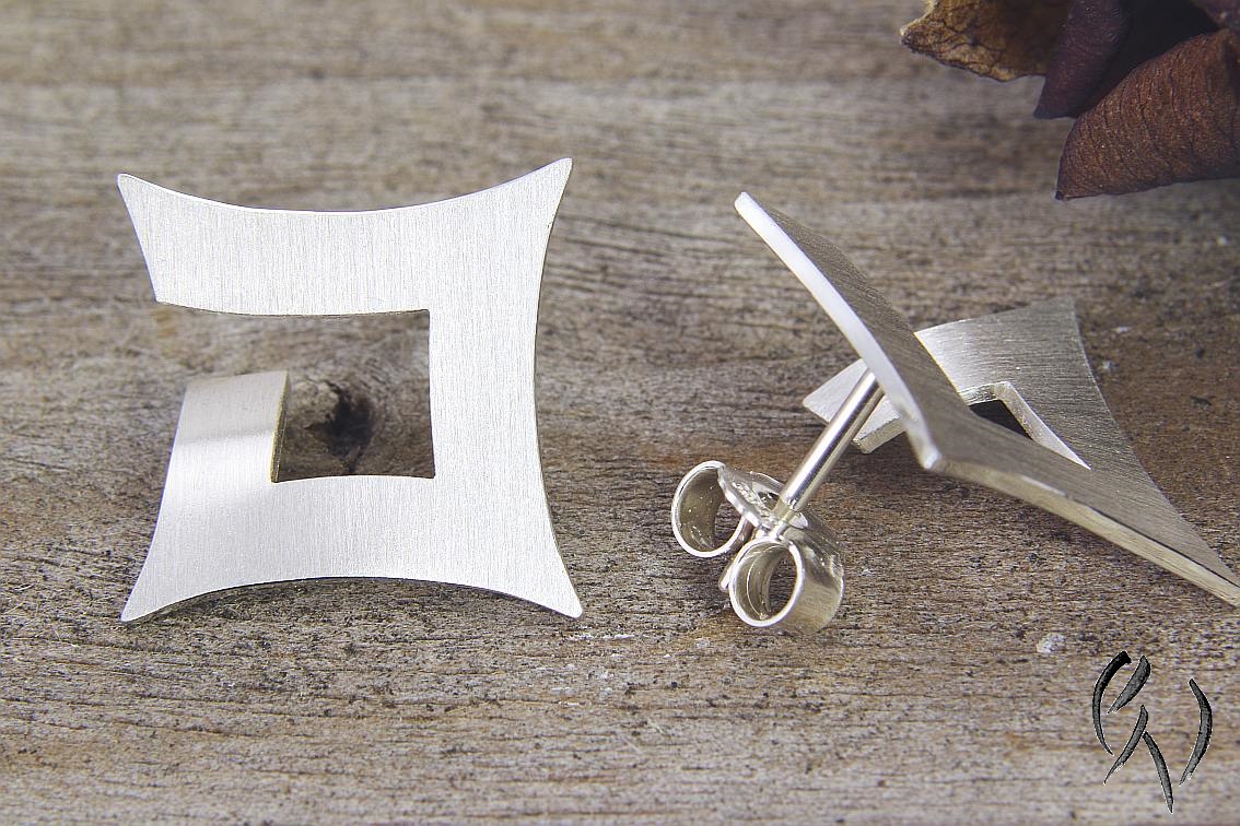 Die Ohrstecker sind ca 15 x 15 mm groß, die Oberfläche ist strichmatt