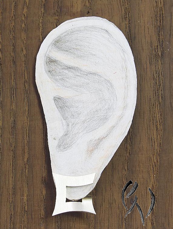 Eine Seite des Rahmens ist geöffnet und schwingt sich hinter das Ohrläppchen.