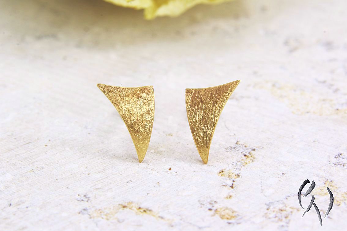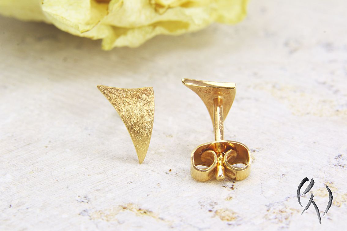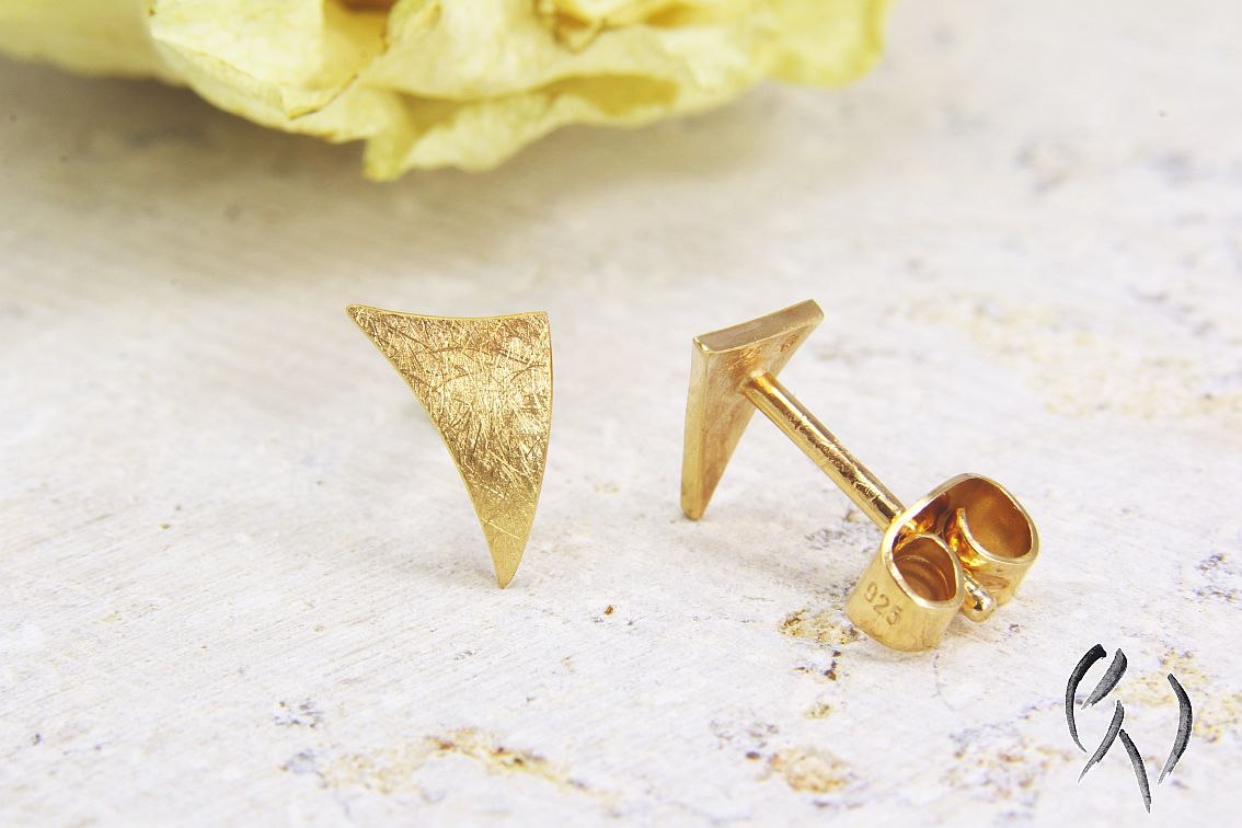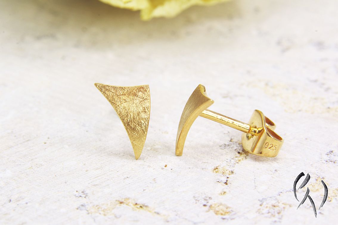 Diese kleine Ohrstecker aus rosévergoldetem Silber 925/- haben die geschwungene Form eines auf der Spitze stehenden Segels.