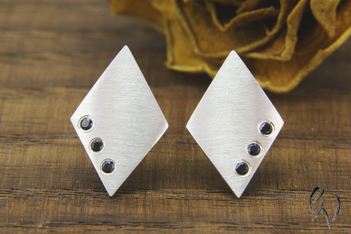 Bei diesen Rauten habe ich entlang einer der unteren Kanten je drei kleine, schwarze Zirkonia eingefasst.