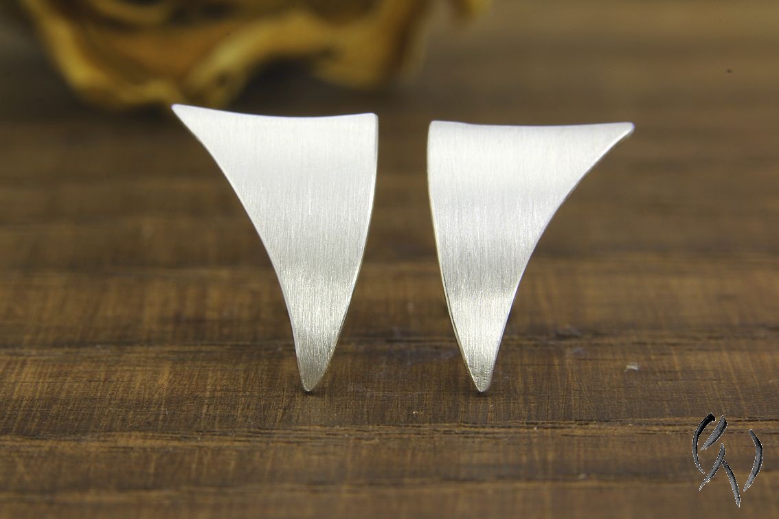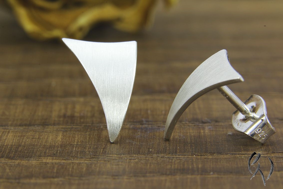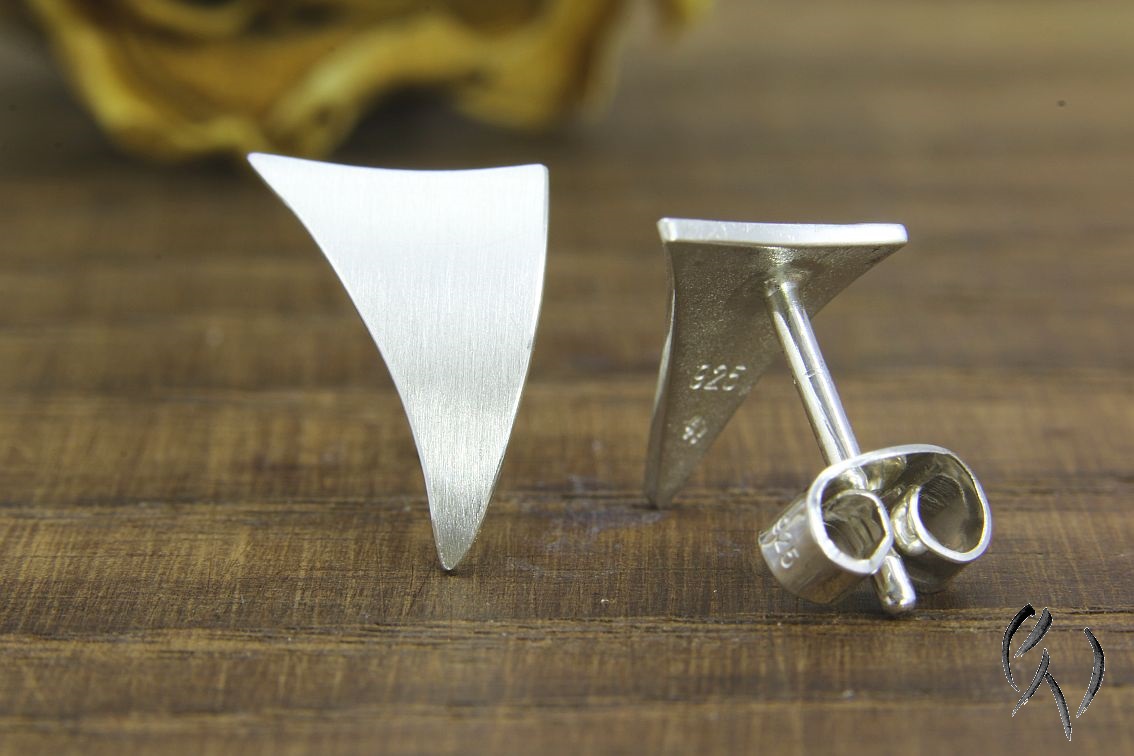 Diese kleine Ohrstecker aus Silber 925/- haben die geschwungene Form eines auf der Spitze stehenden Segels.