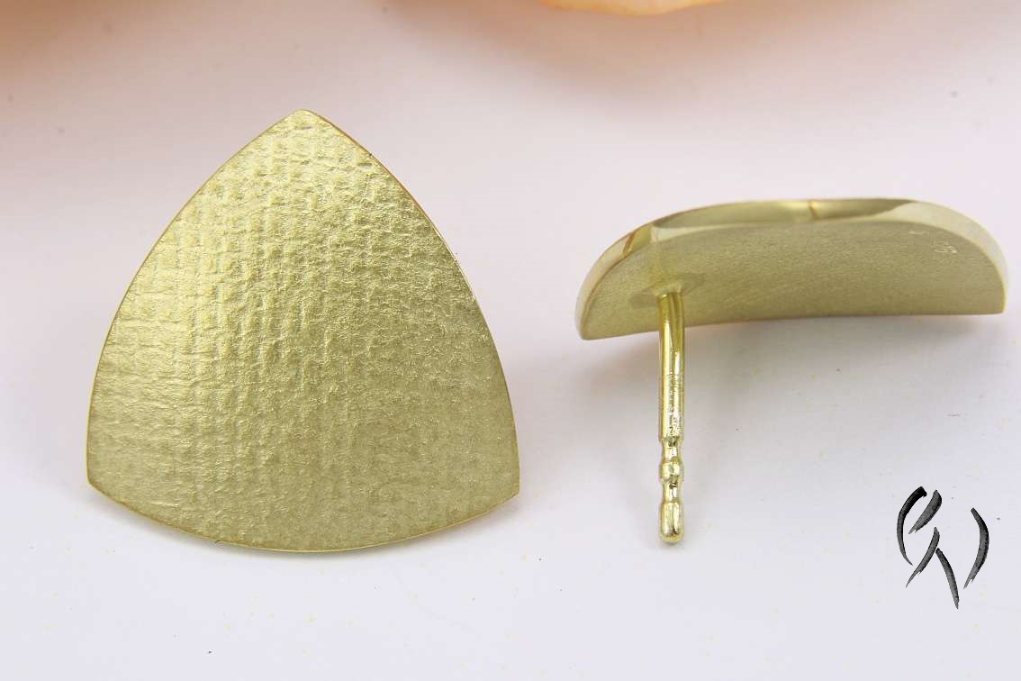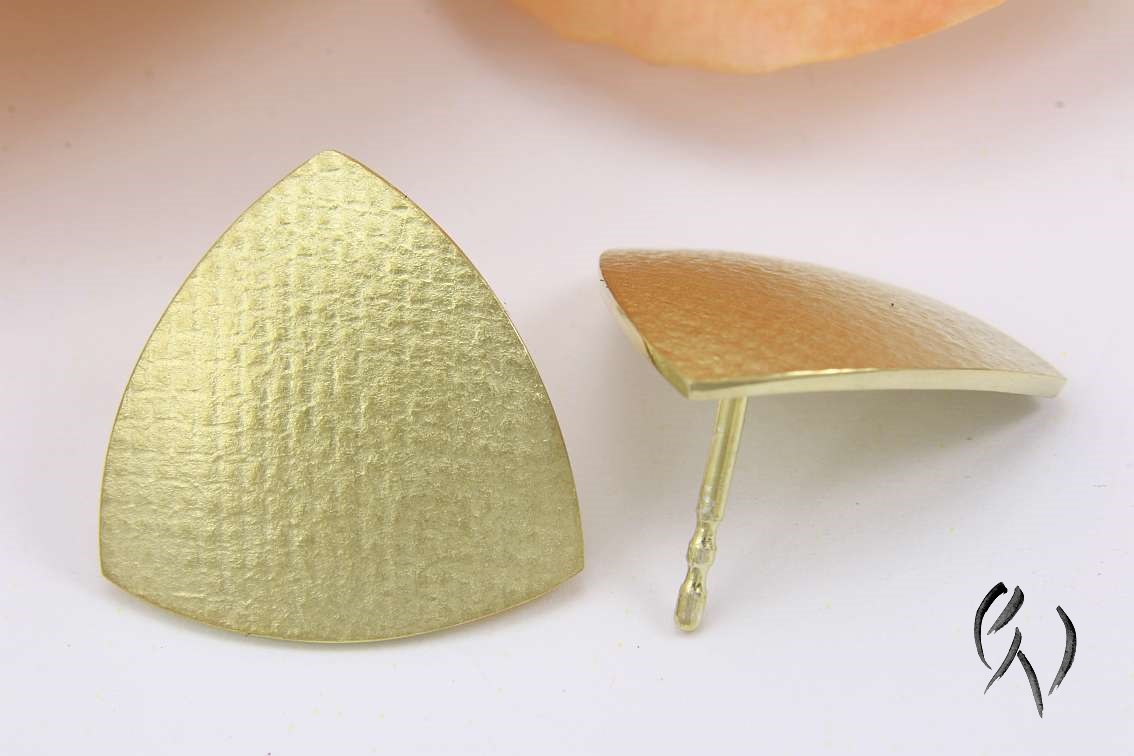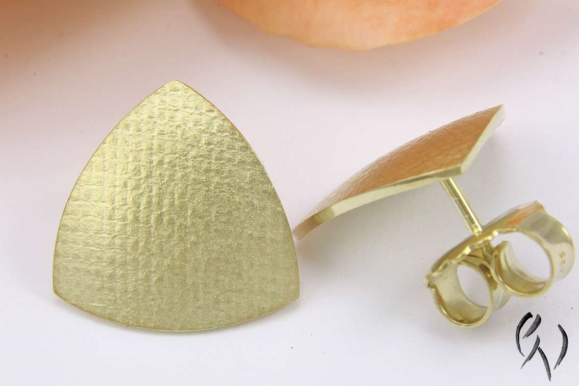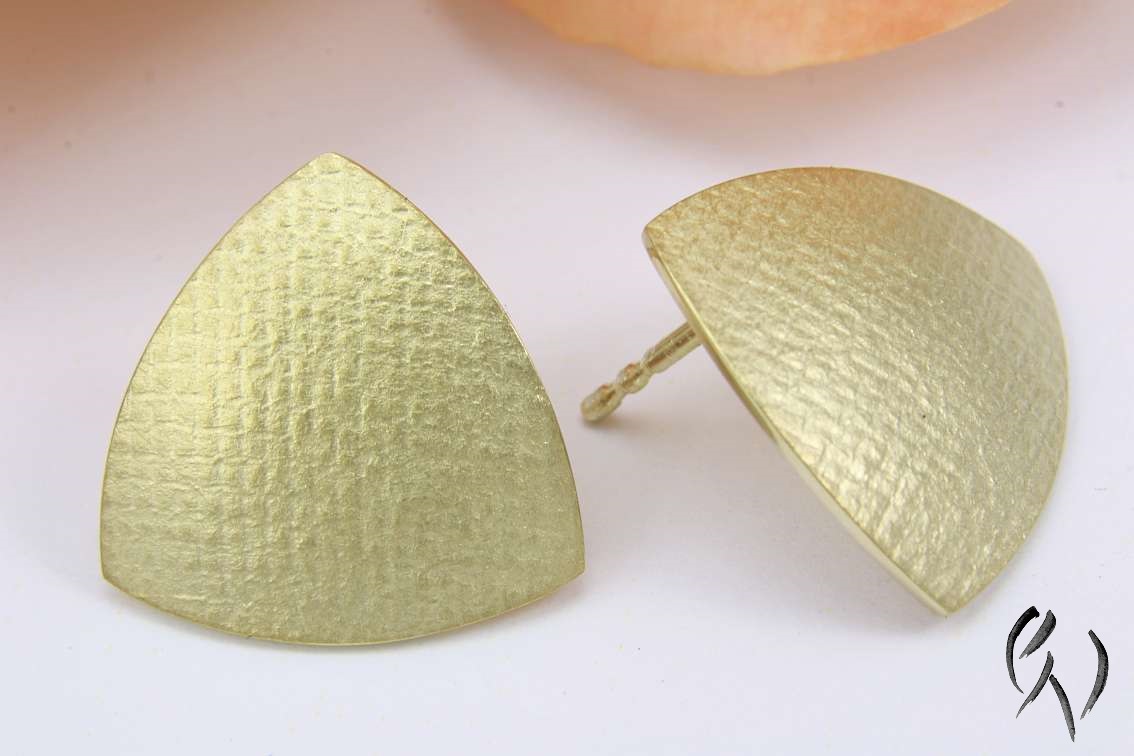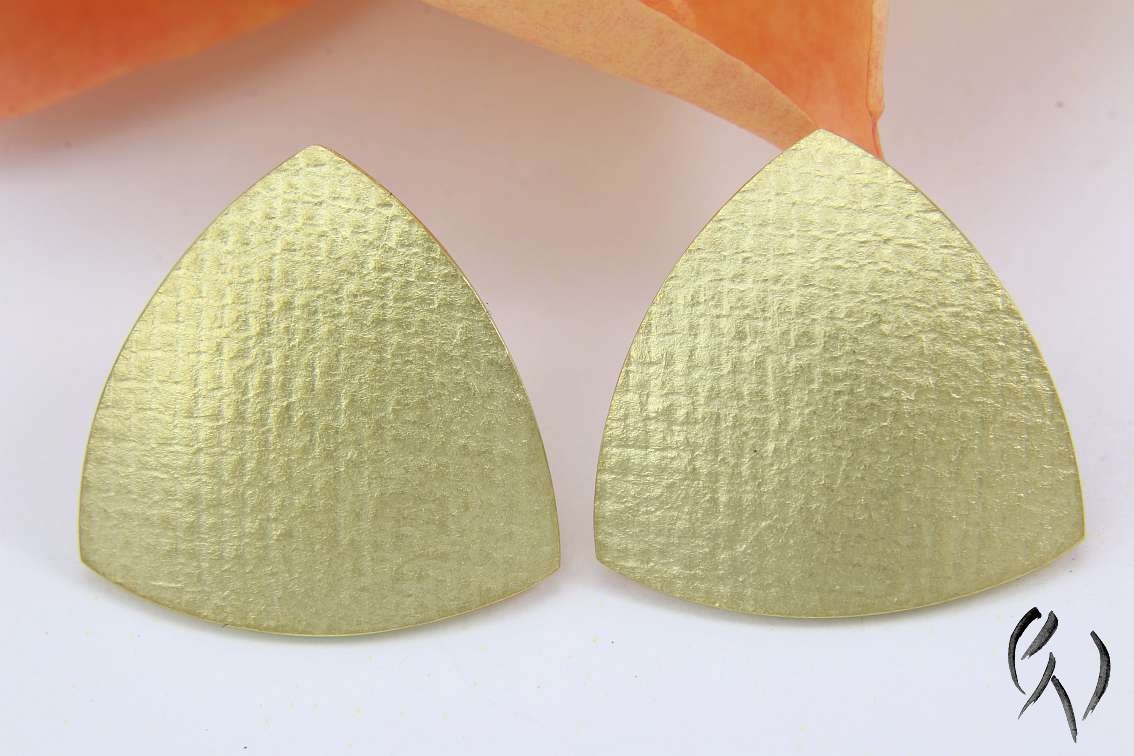 Diese großen Dreiecke aus meiner Werkstattsind die größten meine Dreieck-Ohrstecker. Sie passen gut zu Frauen, die das Auffällige lieben.