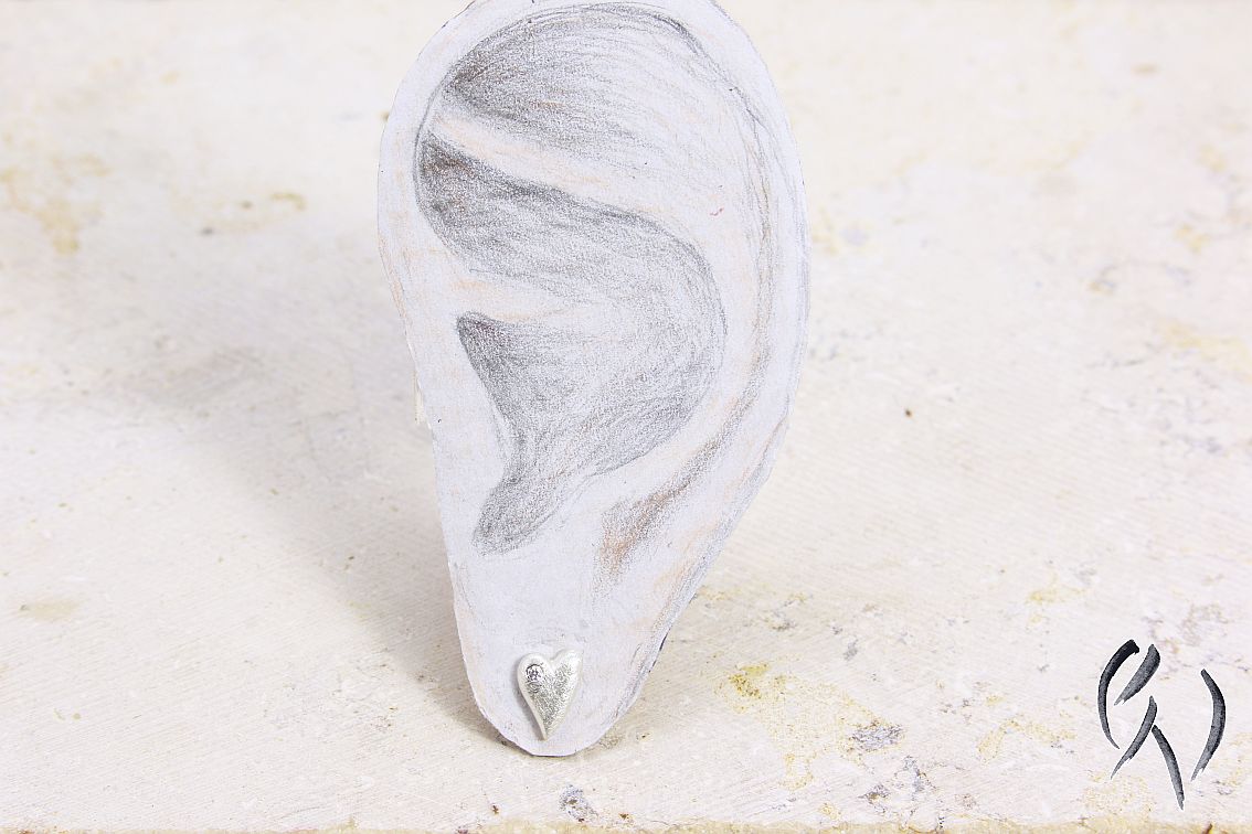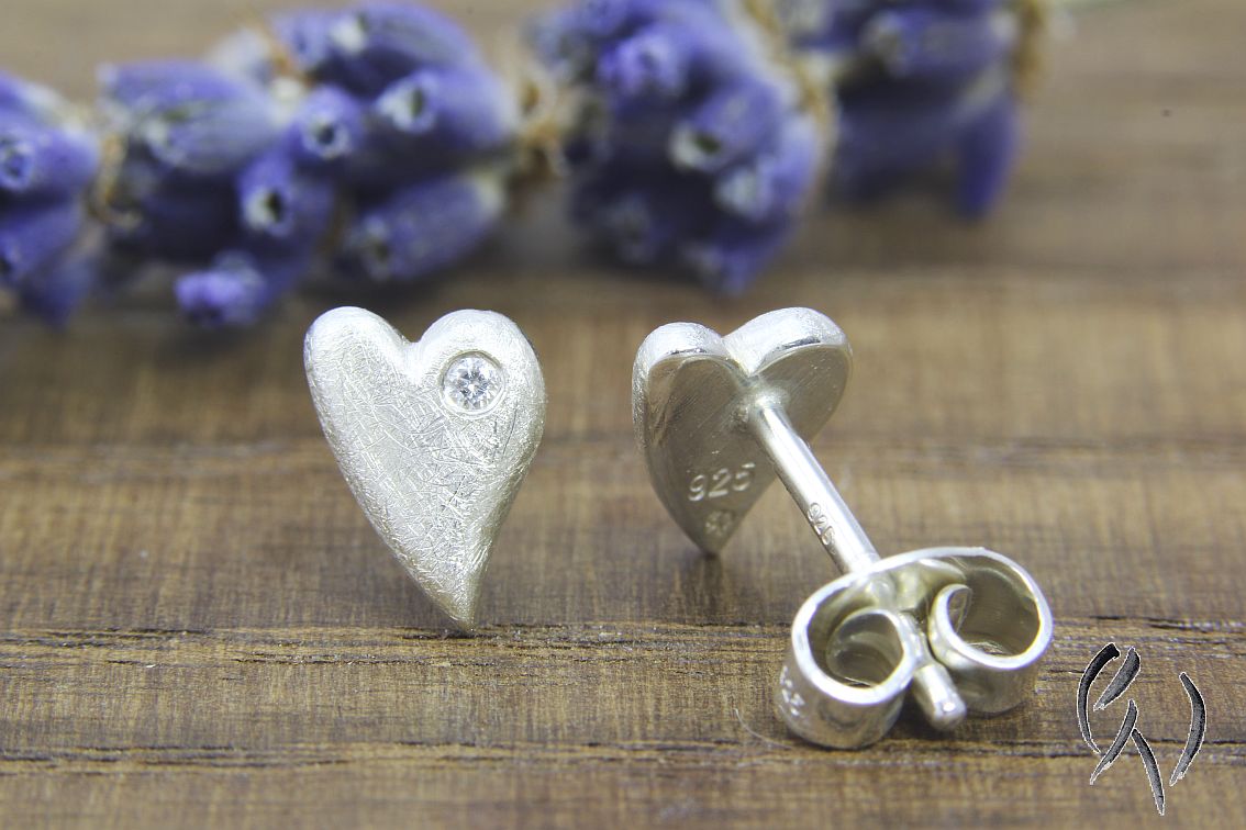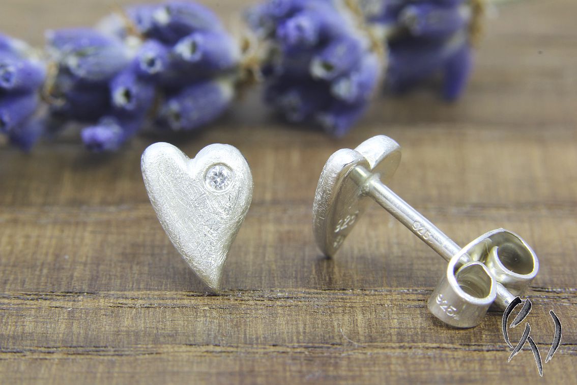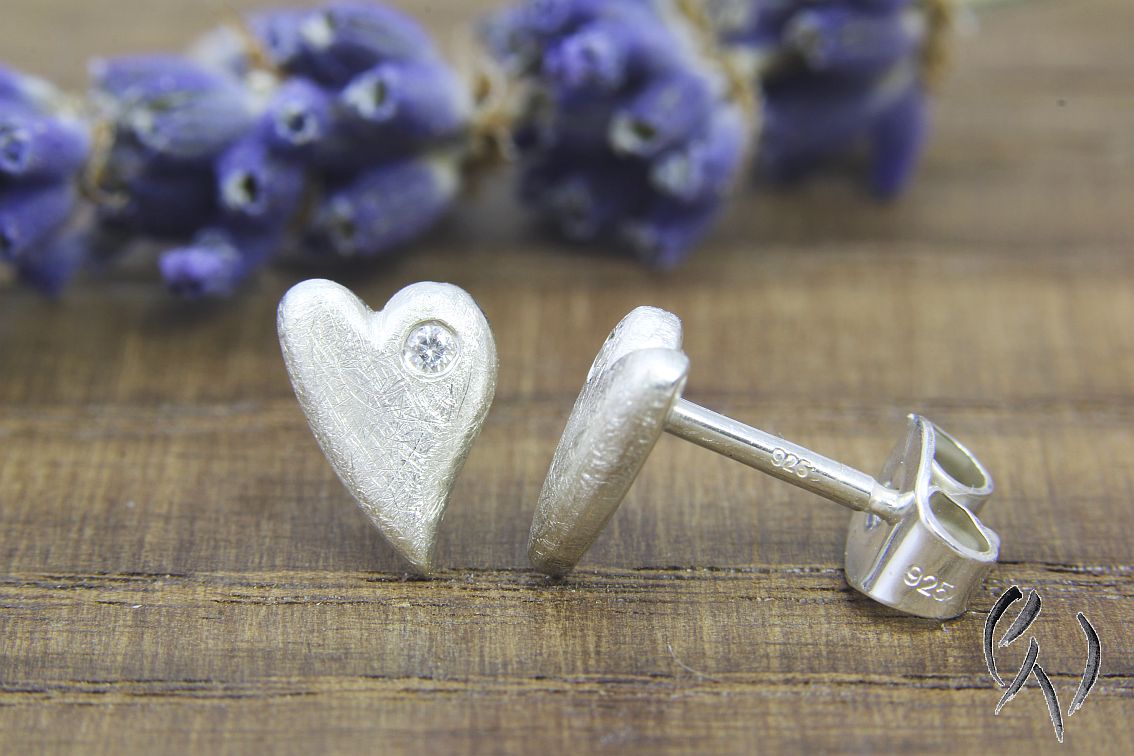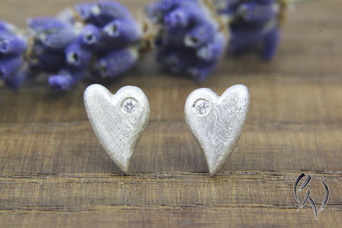 Mit ihrer mattgekratzten, leicht glitzernden Oberfläche sehen sie am Ohr einfach bezaubernd aus.In einen Bogen der Herzen habe ich jeweils einen keinen Zirkonia eingefasst, was dei Herzchen noch ein bisschen mehr zum Funkeln bringt.