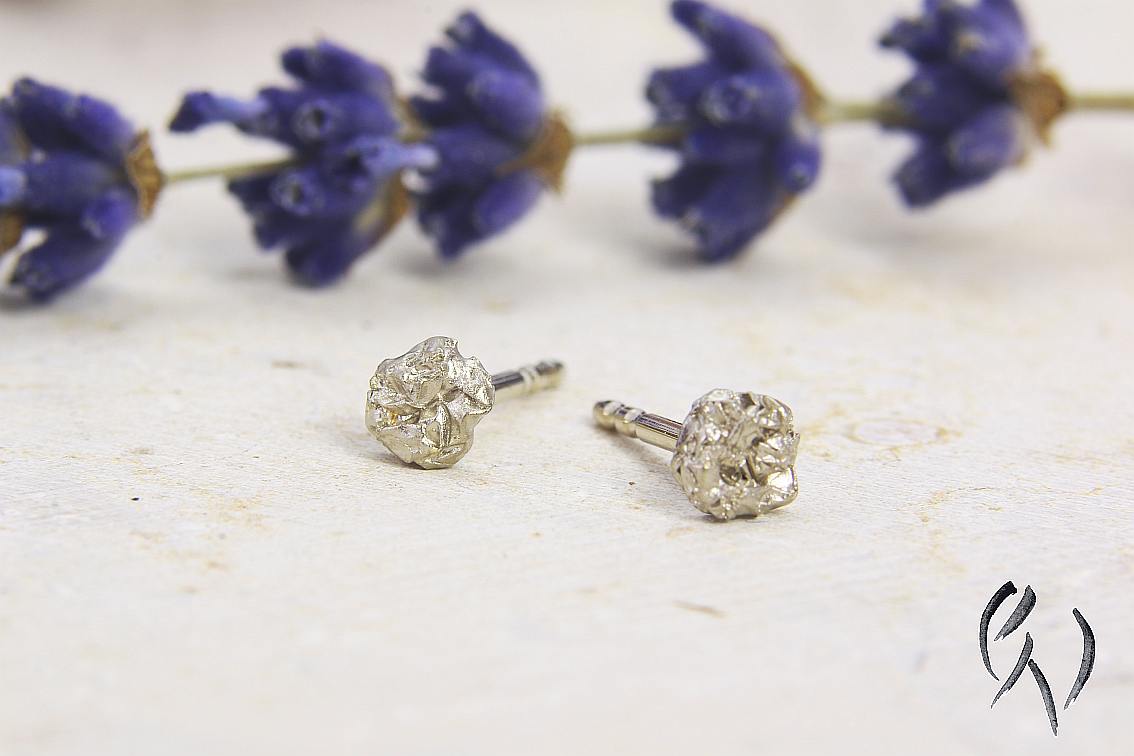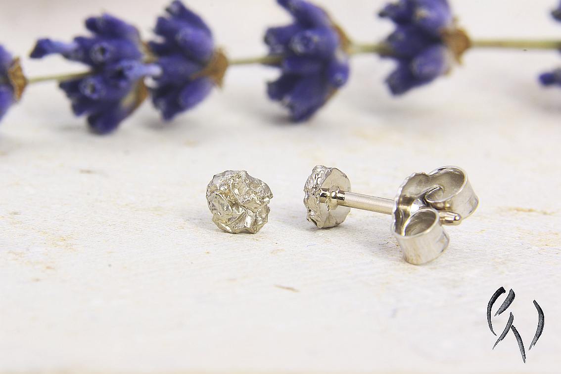 Diese winzigen Ohrstecker aus Weißgold 585/- gehören zu meiner Zerknittert-Kollektion.