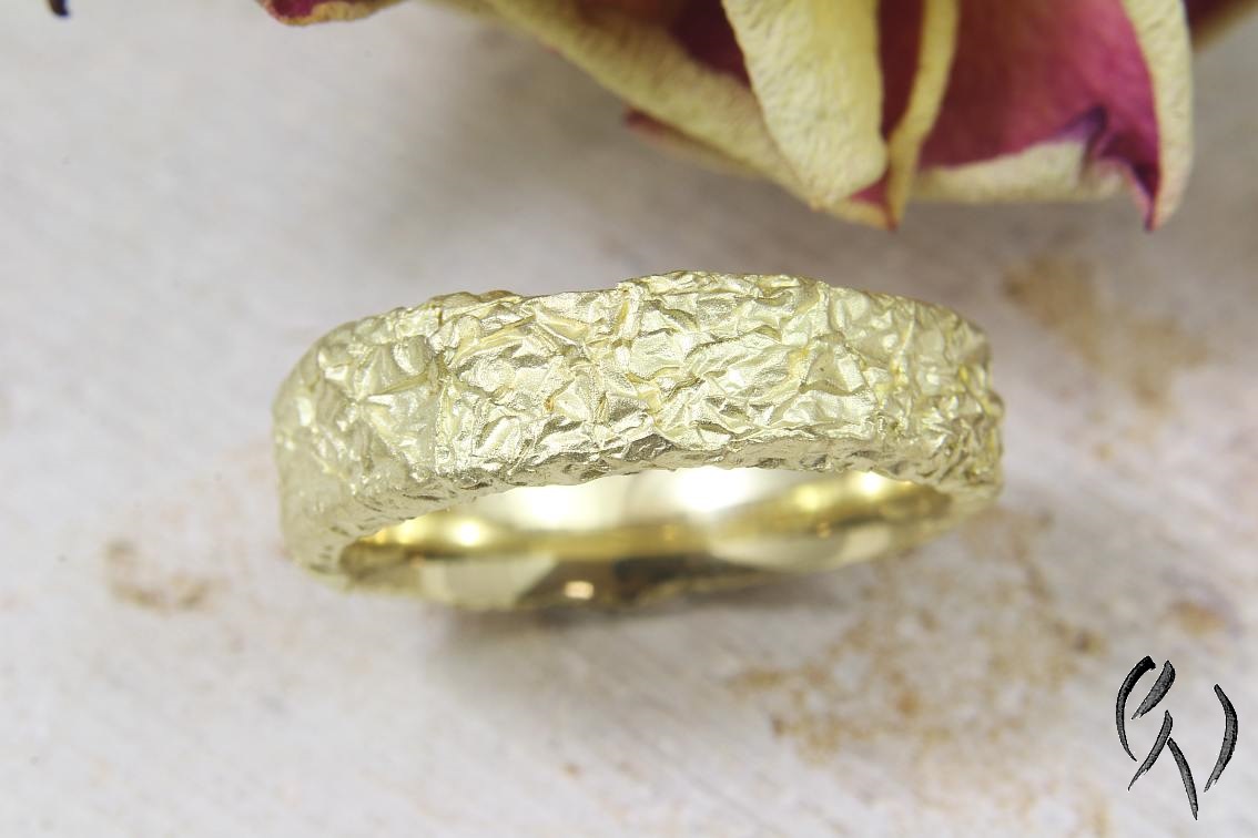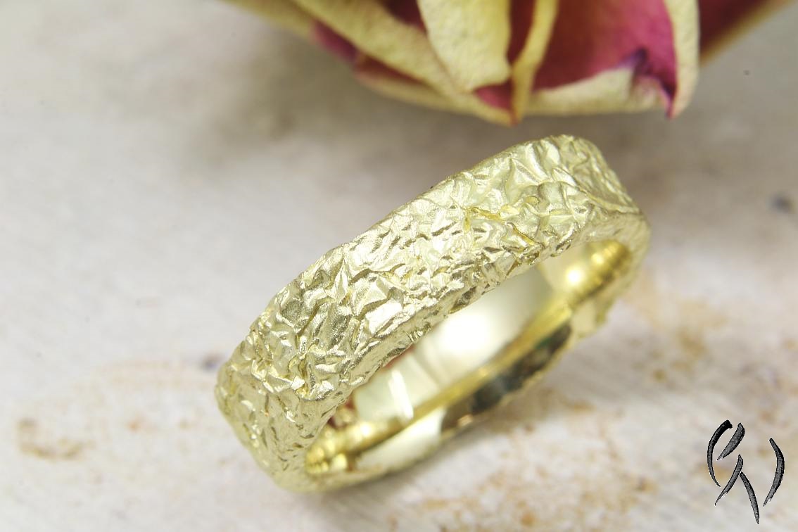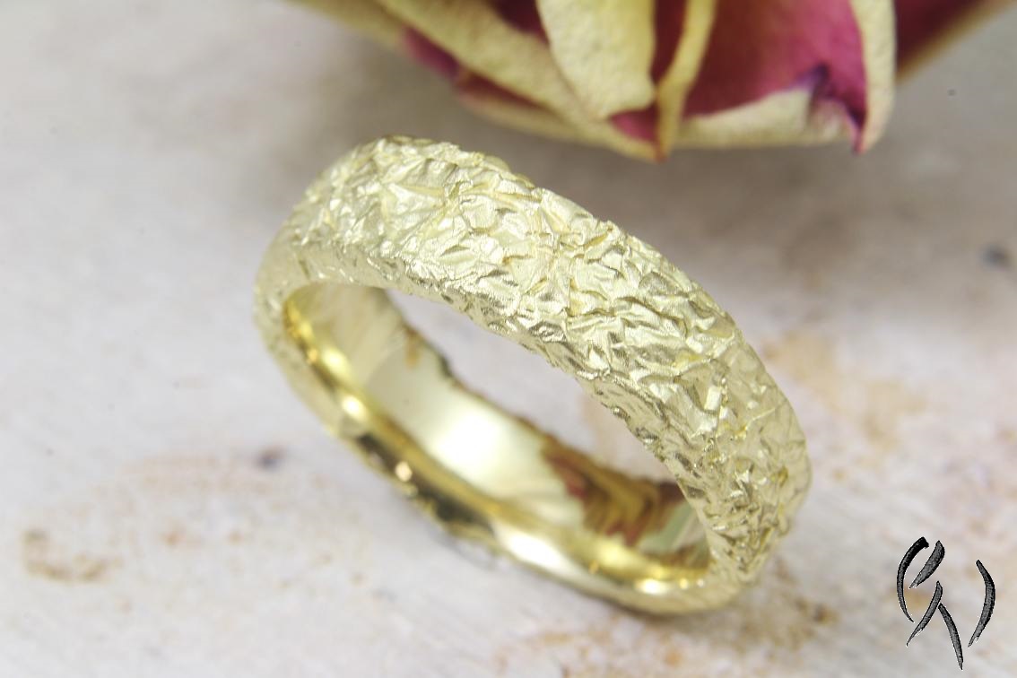 Die Knitterringe kommen mit ihrer ungewöhnlichen Oberfläche in Gold noch schöner heraus als in Silber, auch ich bin immer wieder überrascht und begeistert, wie schön die Ringe in Gold sind.