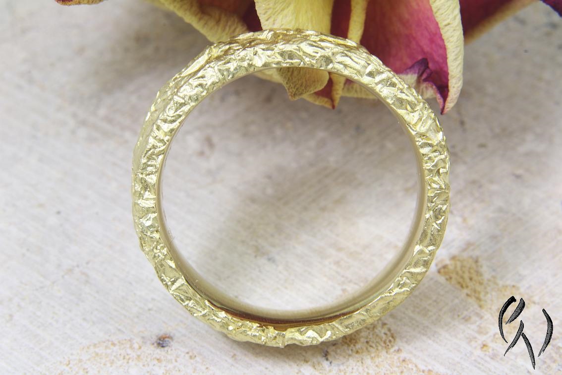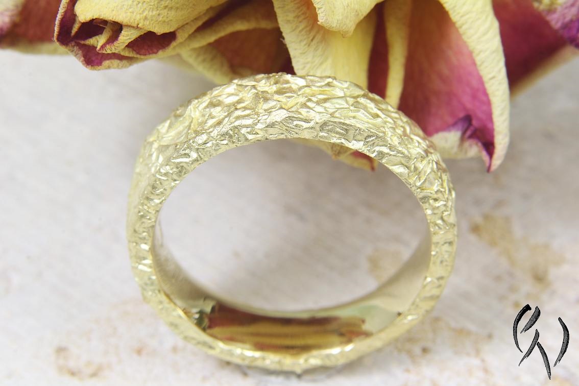 Diese zerknitterte Oberfläche wurde von mir entwickelt und macht diese Ringserie zu etwas ganz Besonderem. Die Innenseite der Ringe ist weich abgerundet und damit angenehm zu tragen.