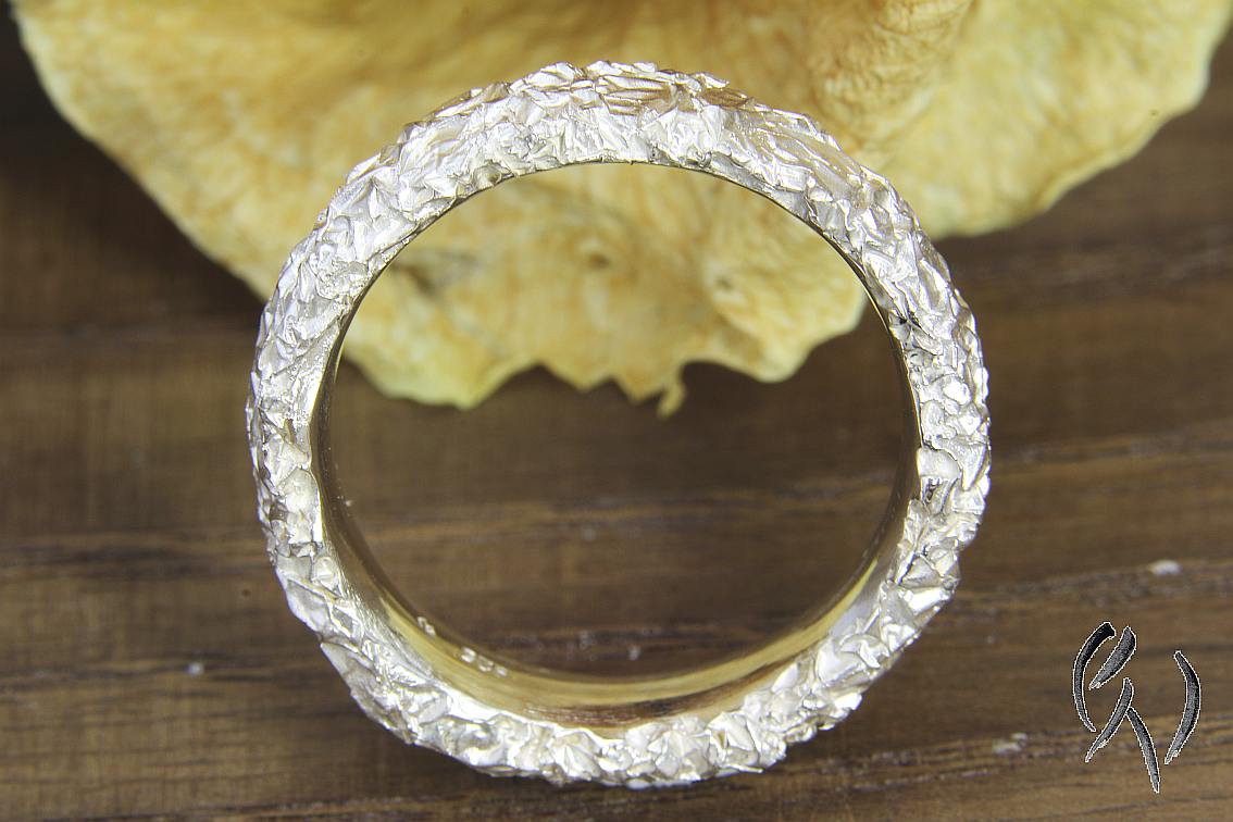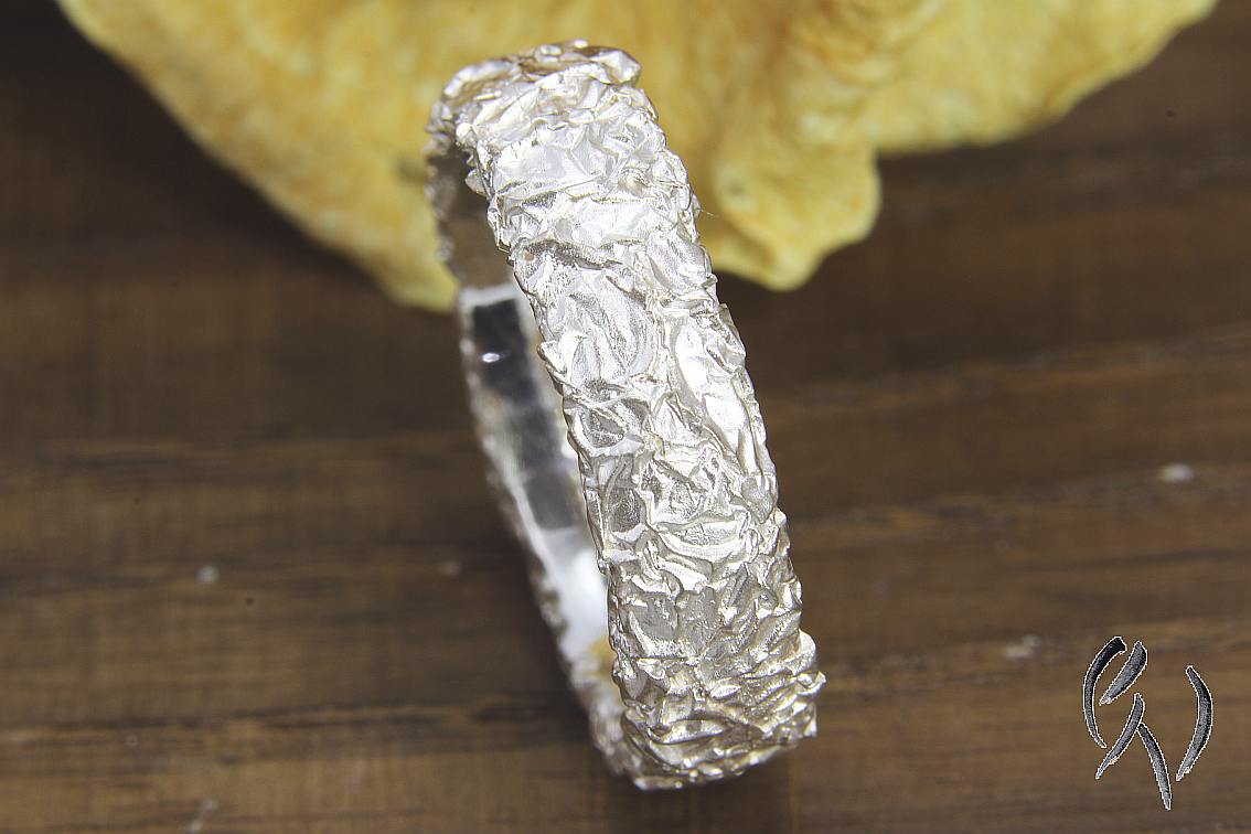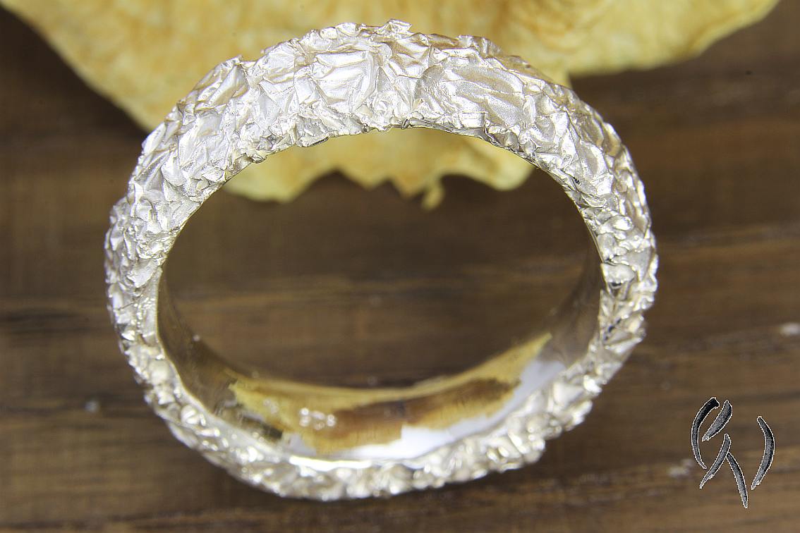 Innen ist der Ring weich abgerundet, dadurch ist er trotz der Knitterstruktur gut zu tragen.